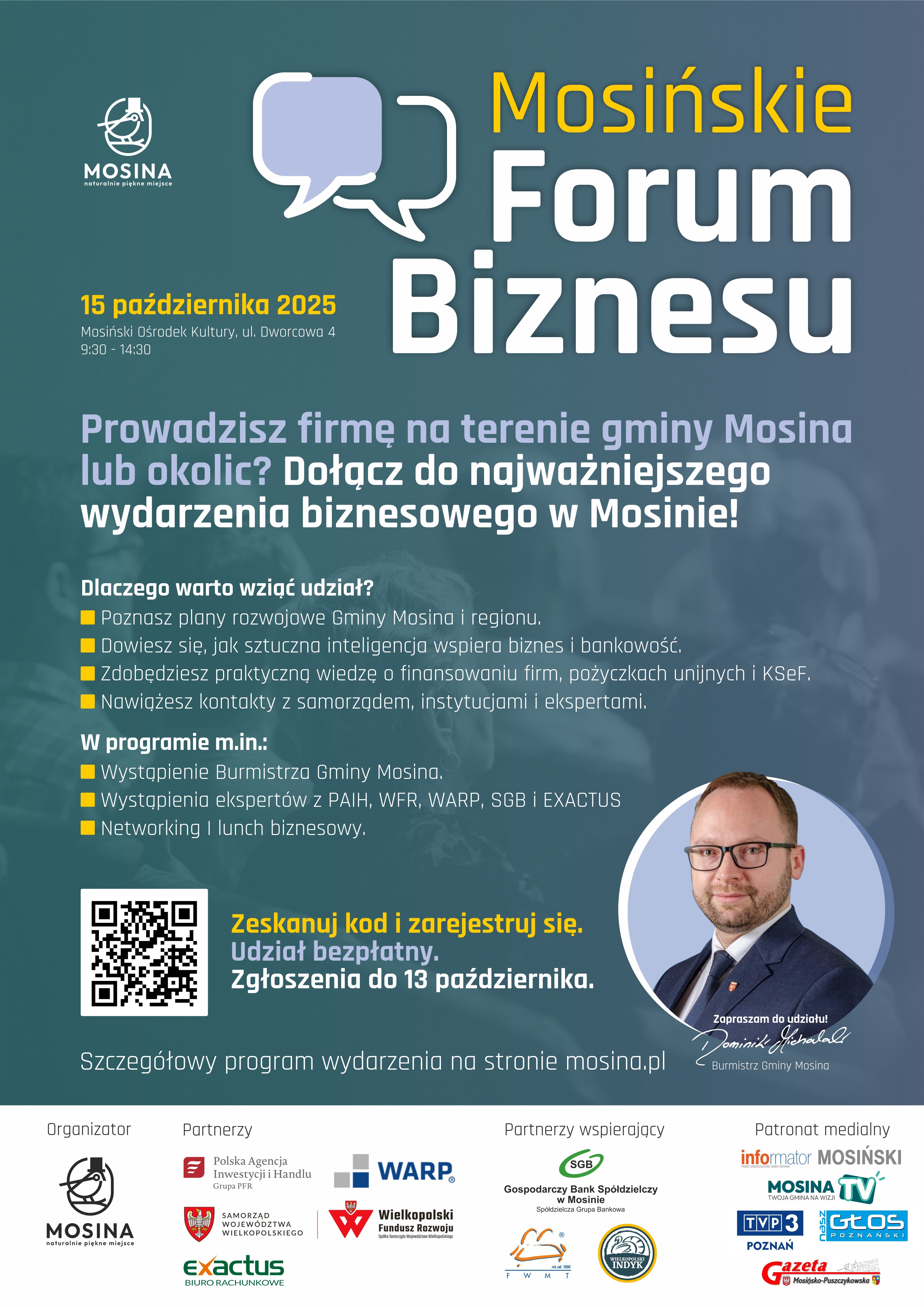Wydarzenie skierowane jest dla przedsiębiorców, menedżerów i wszystkich osób związanych z lokalnym biznesem – nie tylko z Mosiny, ale i z gmin sąsiednich.