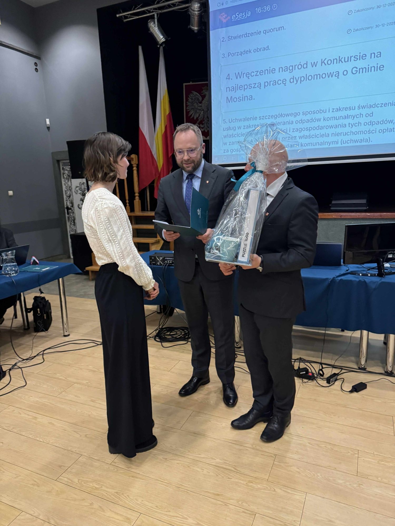 Podsumowanie VIII edycji Konkursu na najlepszą pracę dyplomową o Gminie Mosina – edycja 2025 rok miało miejsce podczas Sesji Rady Miejskiej w Mosinie w dniu 30 grudnia br.