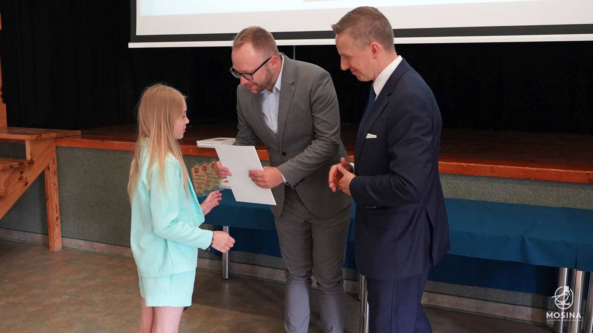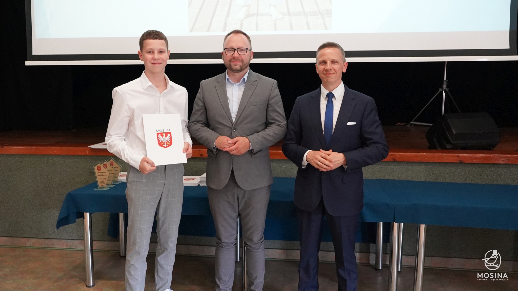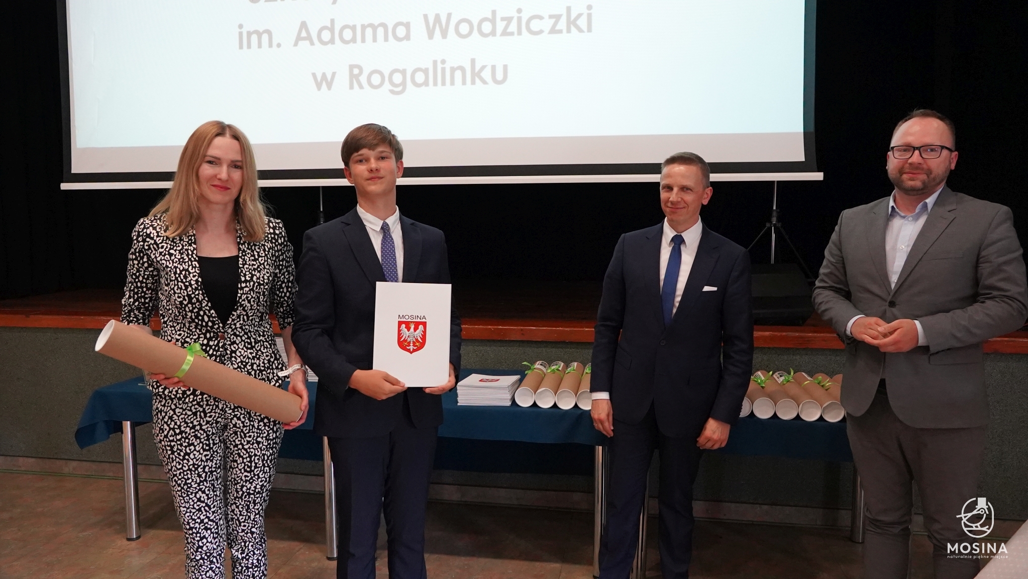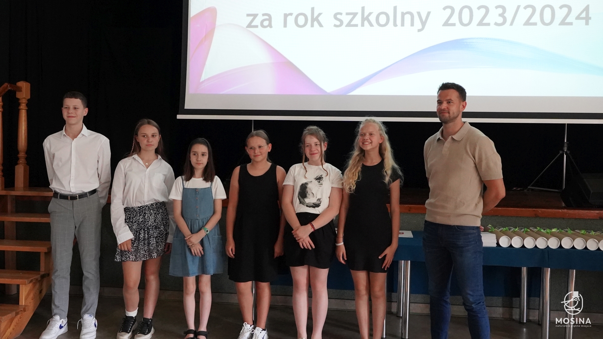 Podczas uroczystości wręczenia nagród dla uczniów szczególnie uzdolnionych, która odbyła się 18 czerwca 2024 r., wręczono 18 nagród za szczególne osiągniecia za rok szkolny 2023/2024. Nagrody wręczono uczniom, którzy spełnili minimum jedno z kryteriów zapisanych w Uchwale Nr LXXXIV/692/123 Rady Miejskiej w Mosinie z dnia 30 marca 2023 r. w sprawie przyjęcia Regulaminu przyznawania przez Gminę Mosina dla uczniów szkół podstawowych na terenie gminy Mosina stypendiów dla uczniów klas VII i VIII i nagród dla uczniów klas IV-VIII: są laureatami konkursów przedmiotowych organizowanych przez Wielkopolskiego Kuratora Oświaty, są laureatami lub finalistami olimpiad przedmiotowych wpisanych na listę Ministra Edukacji Narodowej, zajęli miejsca od I do III w wysokiej rangi konkursach ogólnopolskich lub są finalistami konkursów przedmiotowych organizowanych przez WKO.