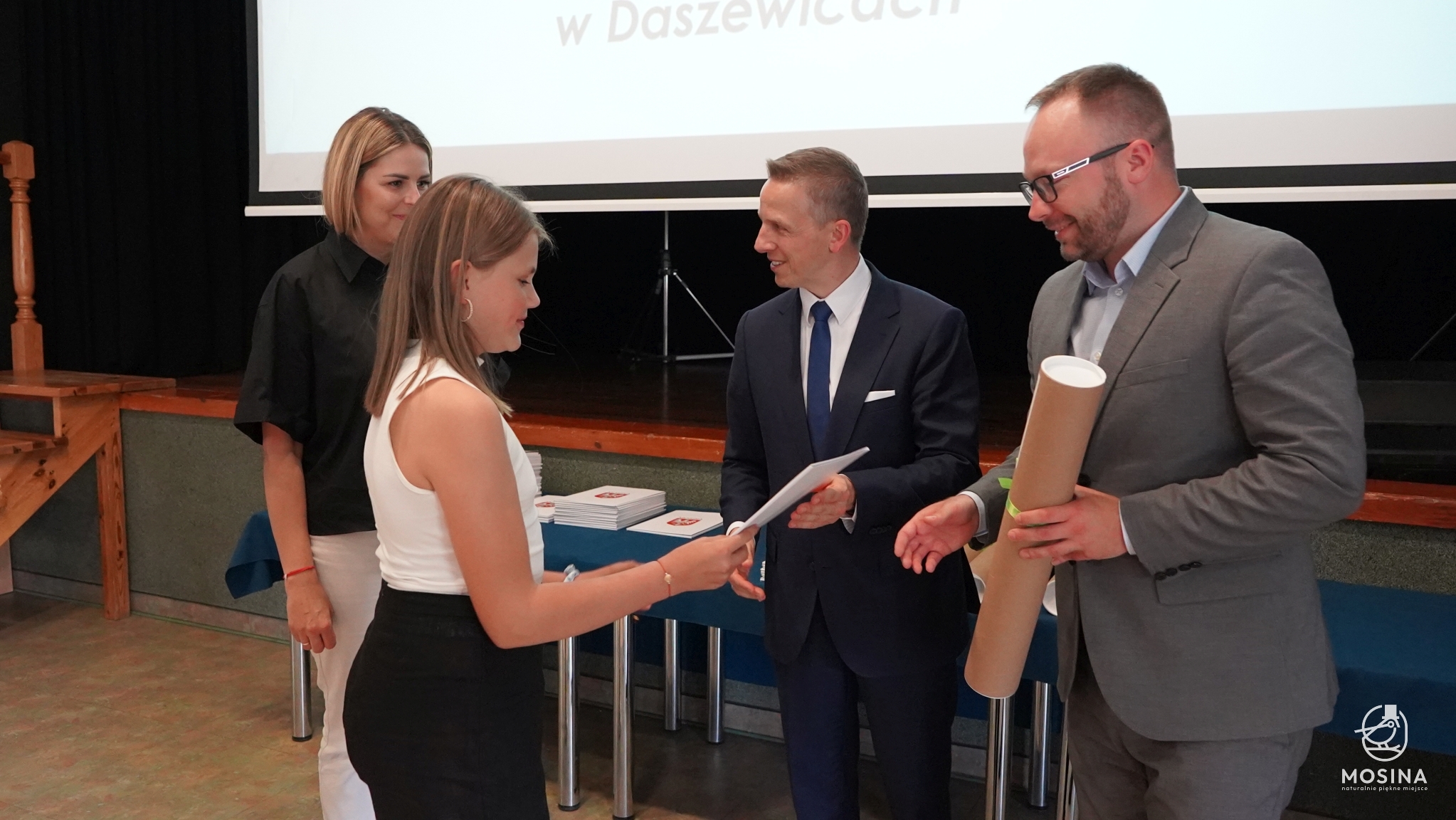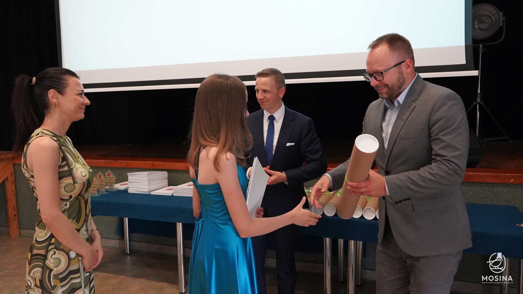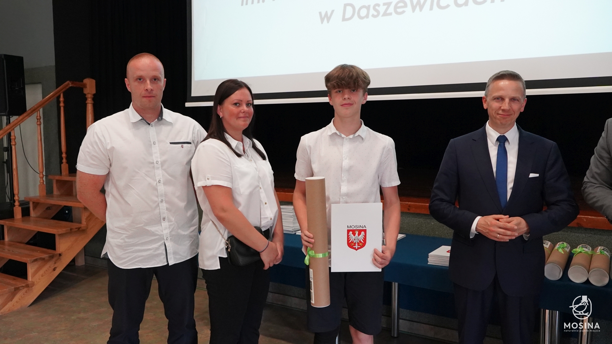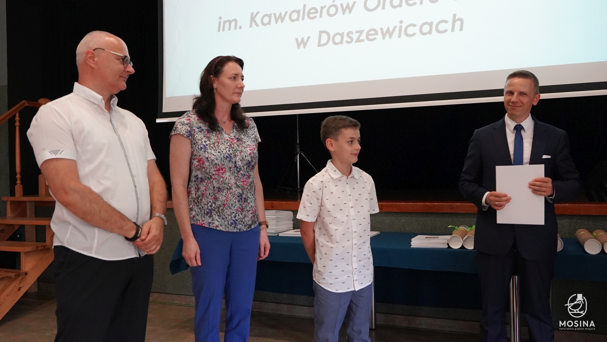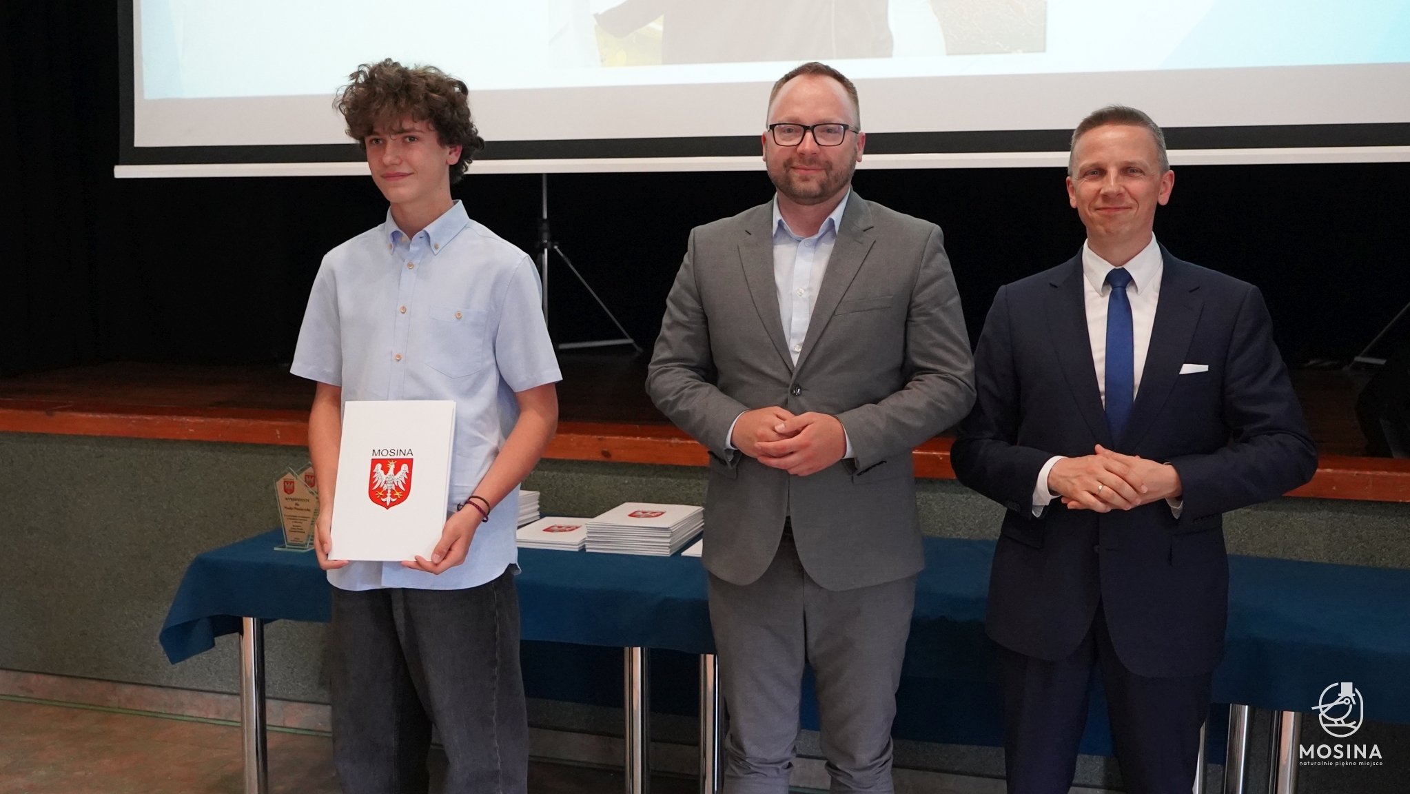 Podczas uroczystości wręczenia nagród dla uczniów szczególnie uzdolnionych, która odbyła się 18 czerwca 2024 r., wręczono 18 nagród za szczególne osiągniecia za rok szkolny 2023/2024. Nagrody wręczono uczniom, którzy spełnili minimum jedno z kryteriów zapisanych w Uchwale Nr LXXXIV/692/123 Rady Miejskiej w Mosinie z dnia 30 marca 2023 r. w sprawie przyjęcia Regulaminu przyznawania przez Gminę Mosina dla uczniów szkół podstawowych na terenie gminy Mosina stypendiów dla uczniów klas VII i VIII i nagród dla uczniów klas IV-VIII: są laureatami konkursów przedmiotowych organizowanych przez Wielkopolskiego Kuratora Oświaty, są laureatami lub finalistami olimpiad przedmiotowych wpisanych na listę Ministra Edukacji Narodowej, zajęli miejsca od I do III w wysokiej rangi konkursach ogólnopolskich lub są finalistami konkursów przedmiotowych organizowanych przez WKO.