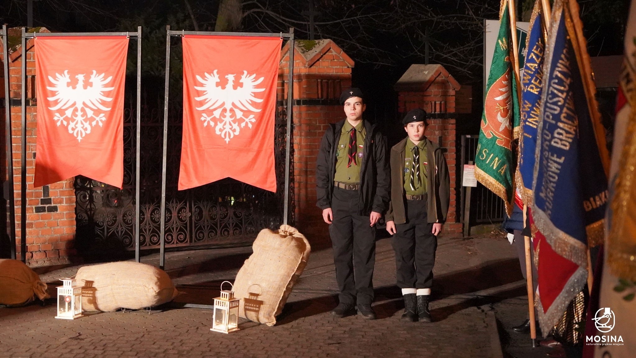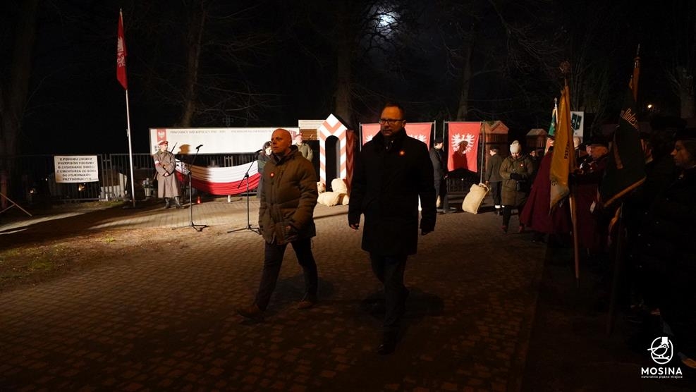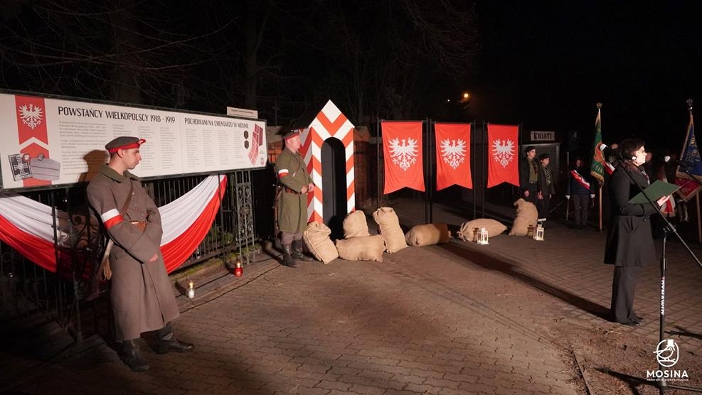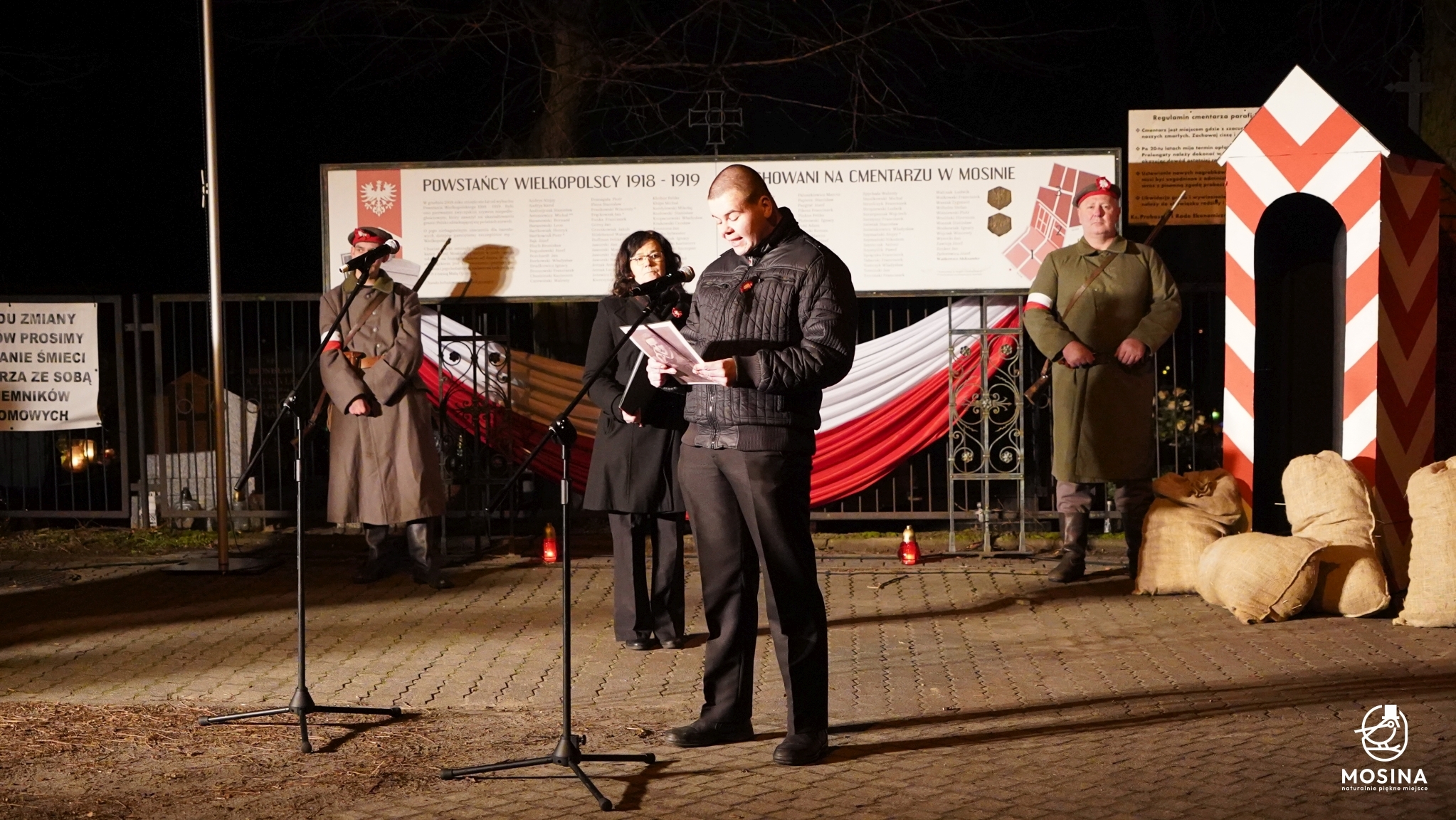 Podczas patriotycznej uroczystości z oprawą muzyczną Mosińskiej Orkiestry Dętej im. hm. Antoniego Jerzaka, powstańca wielkopolskiego, w imieniu mieszkańców Gminy Burmistrz Dominik Michalak i Przewodniczący Rady Miejskiej w Mosinie Ziemowit złożyli symboliczną wiązankę kwiatów na grobie poległego powstańca Piotra Mocka i zapalili znicz na mogile Rozstrzelanych, wśród których byli Powstańcy Wielkopolscy.