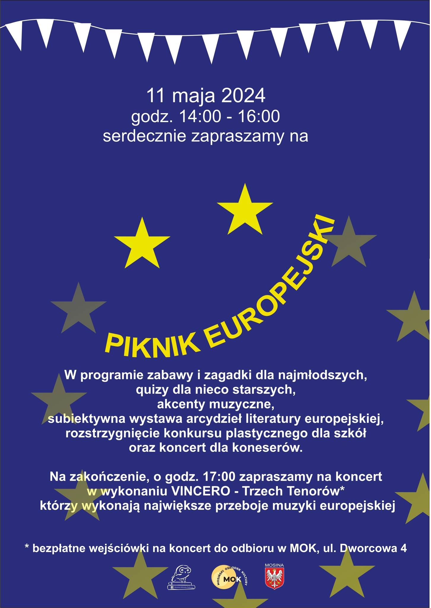 Zapraszamy na Piknik Europejski, który odbędzie się 11 maja w godz. 14:00 - 16:00 przy Mosińskim Ośrodku Kultury ul. Dworcowa 4.