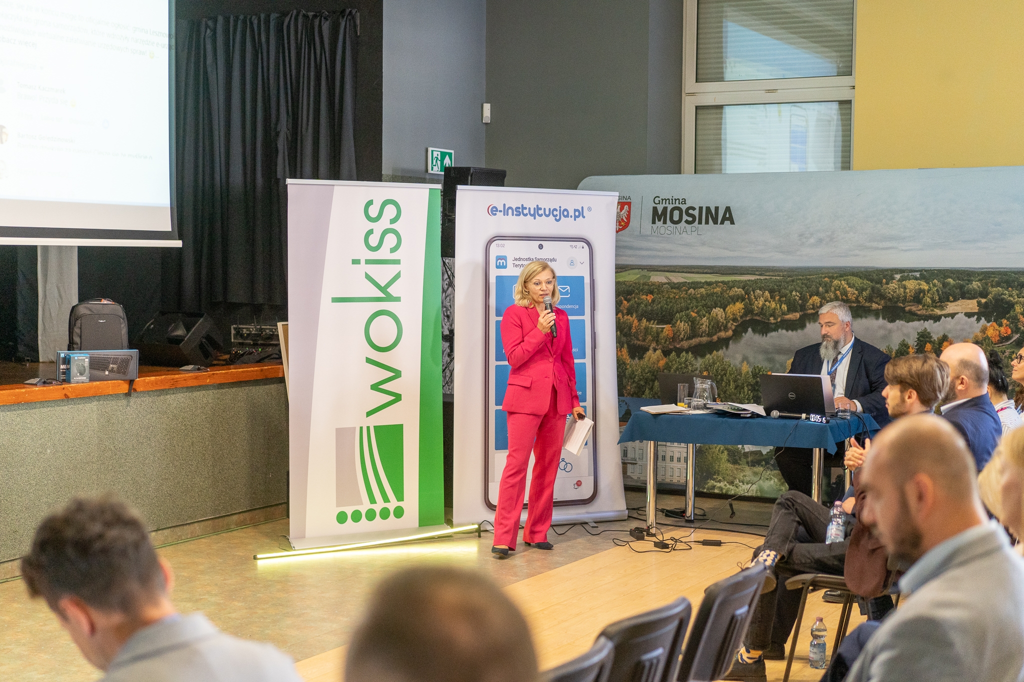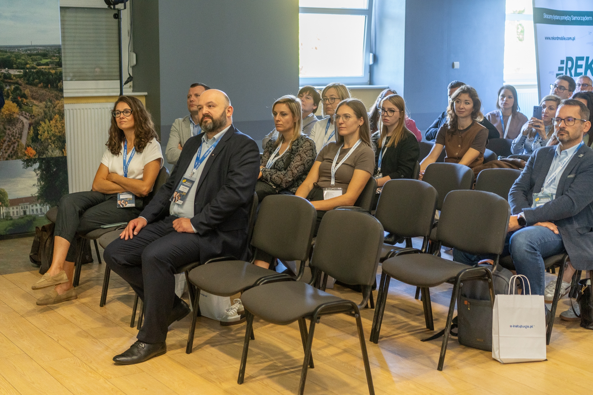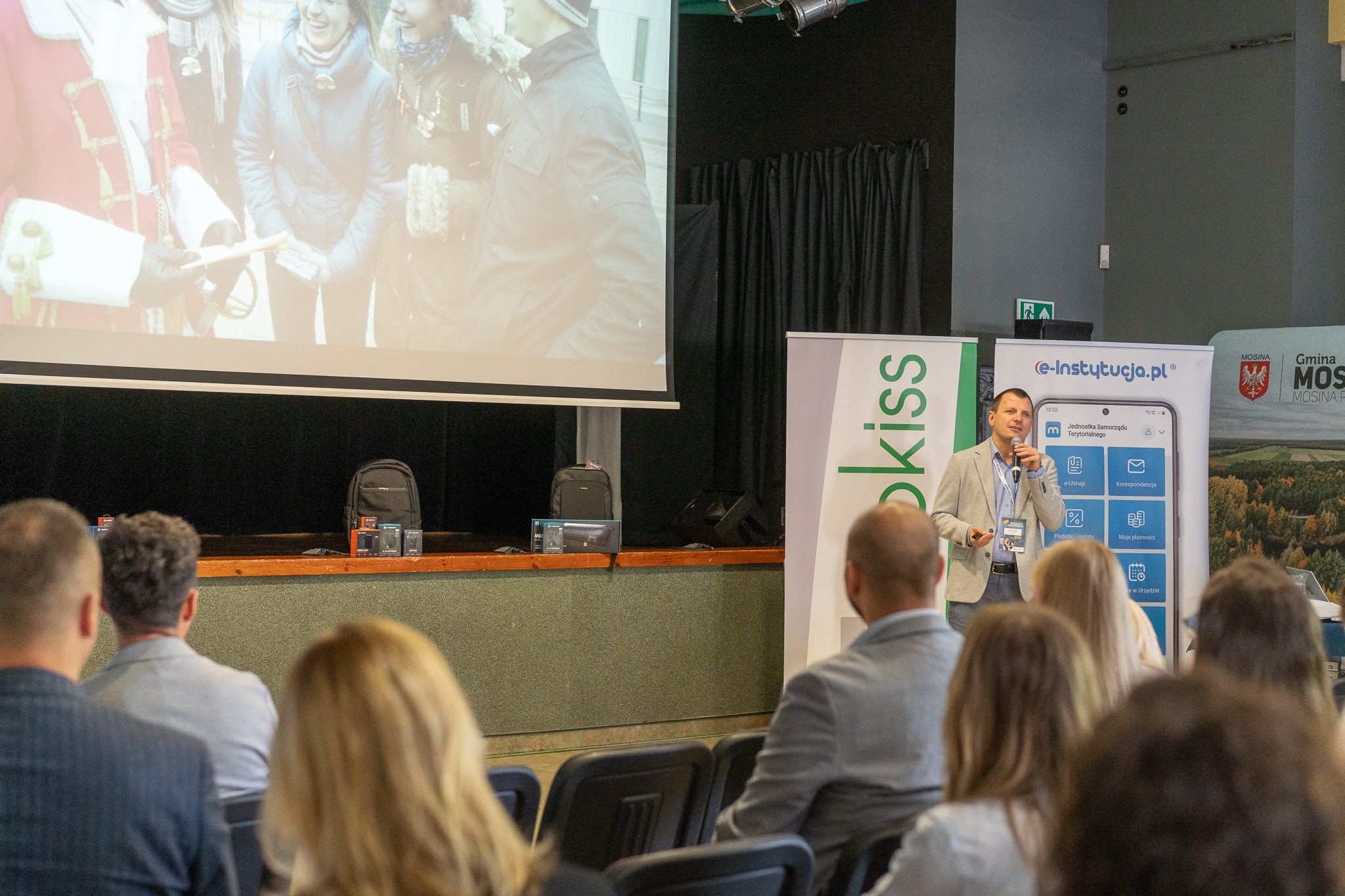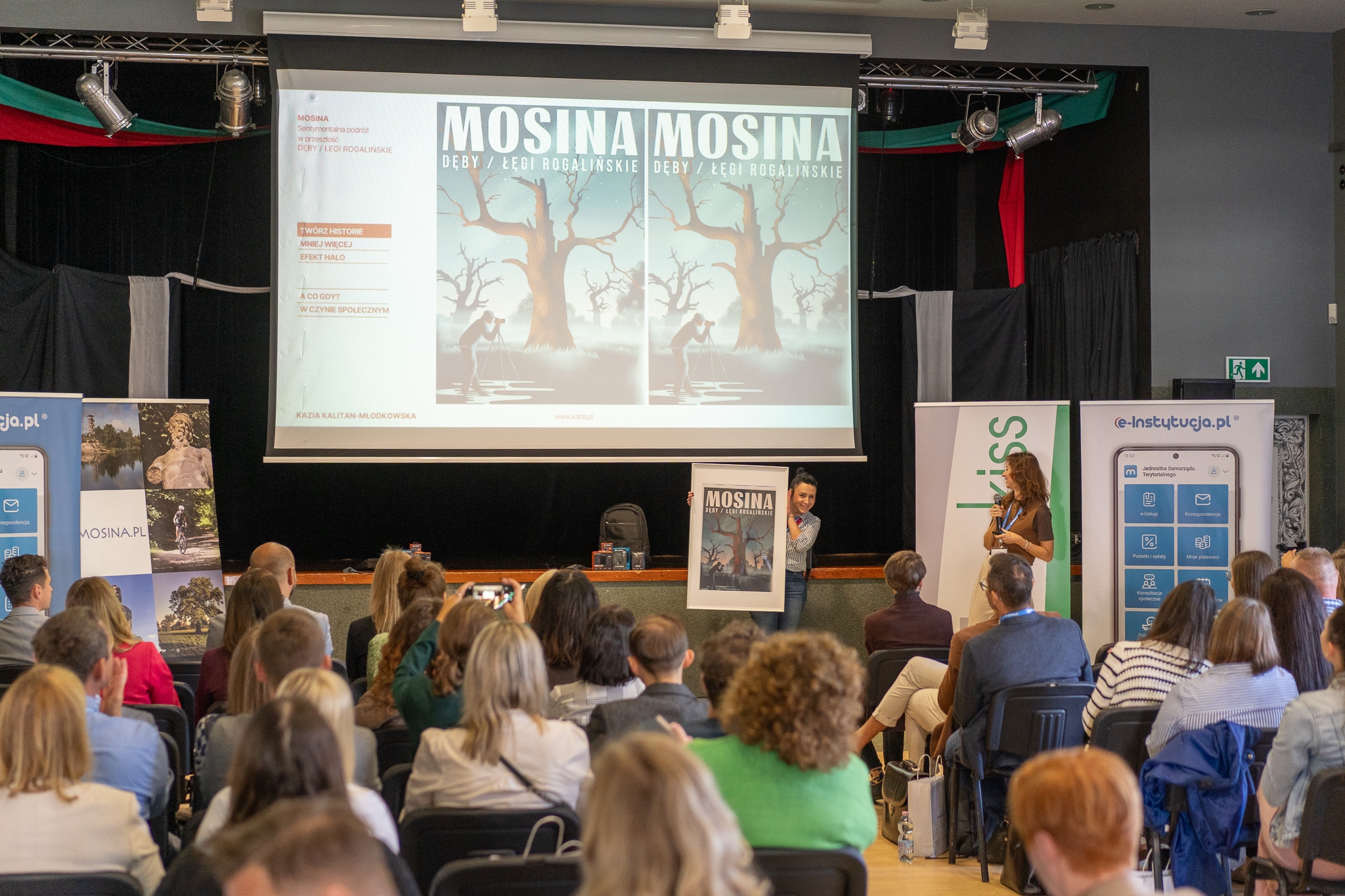 Program wydarzenia obejmował wystąpienia praktyków z różnych dziedzin. Artur Krysztofiak mówił o nadchodzącej zmianie w promocji JST, gdzie sztuczna inteligencja może obniżyć koszty i ułatwić codzienną pracę. Jakub Haremza zwrócił uwagę na rolę graficznej tożsamości miejscowości, a Iwona Kalitan-Młodkowska pokazała, jak obraz staje się pełnoprawnym narzędziem komunikacji. Karolina Chrząszcz podjęła niezwykle aktualny temat – jak dotrzeć do mieszkańców w czasach nadmiaru informacji, kiedy uwaga odbiorców jest coraz bardziej ograniczona. Iwona Kowalska zaprezentowała natomiast praktyczne rozwiązania oferowane przez platformę e-Instytucja.pl, pokazując, jak narzędzia cyfrowe mogą wspierać nowoczesną administrację.