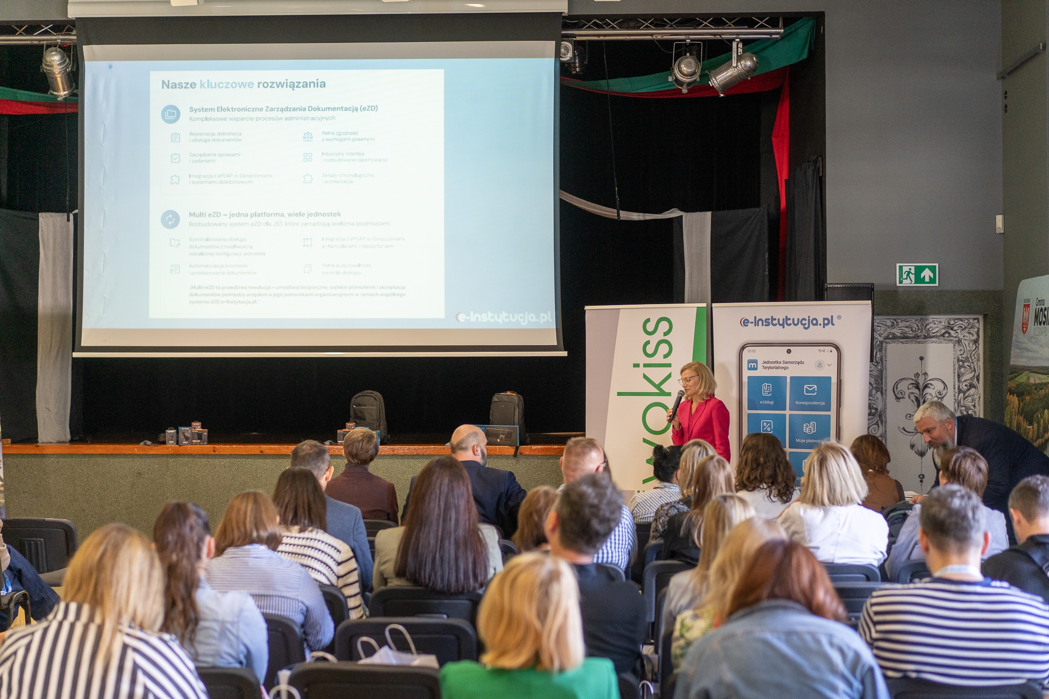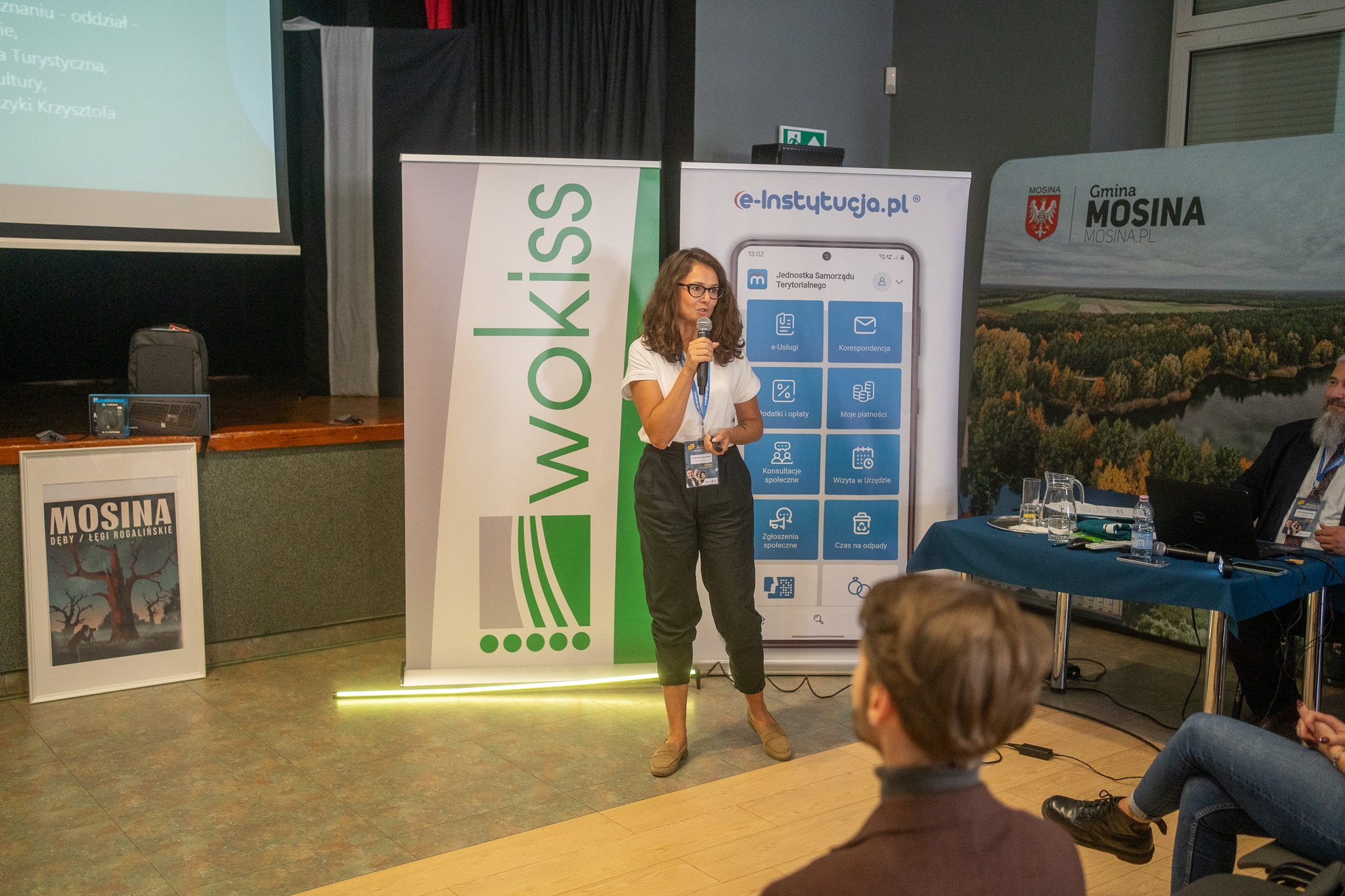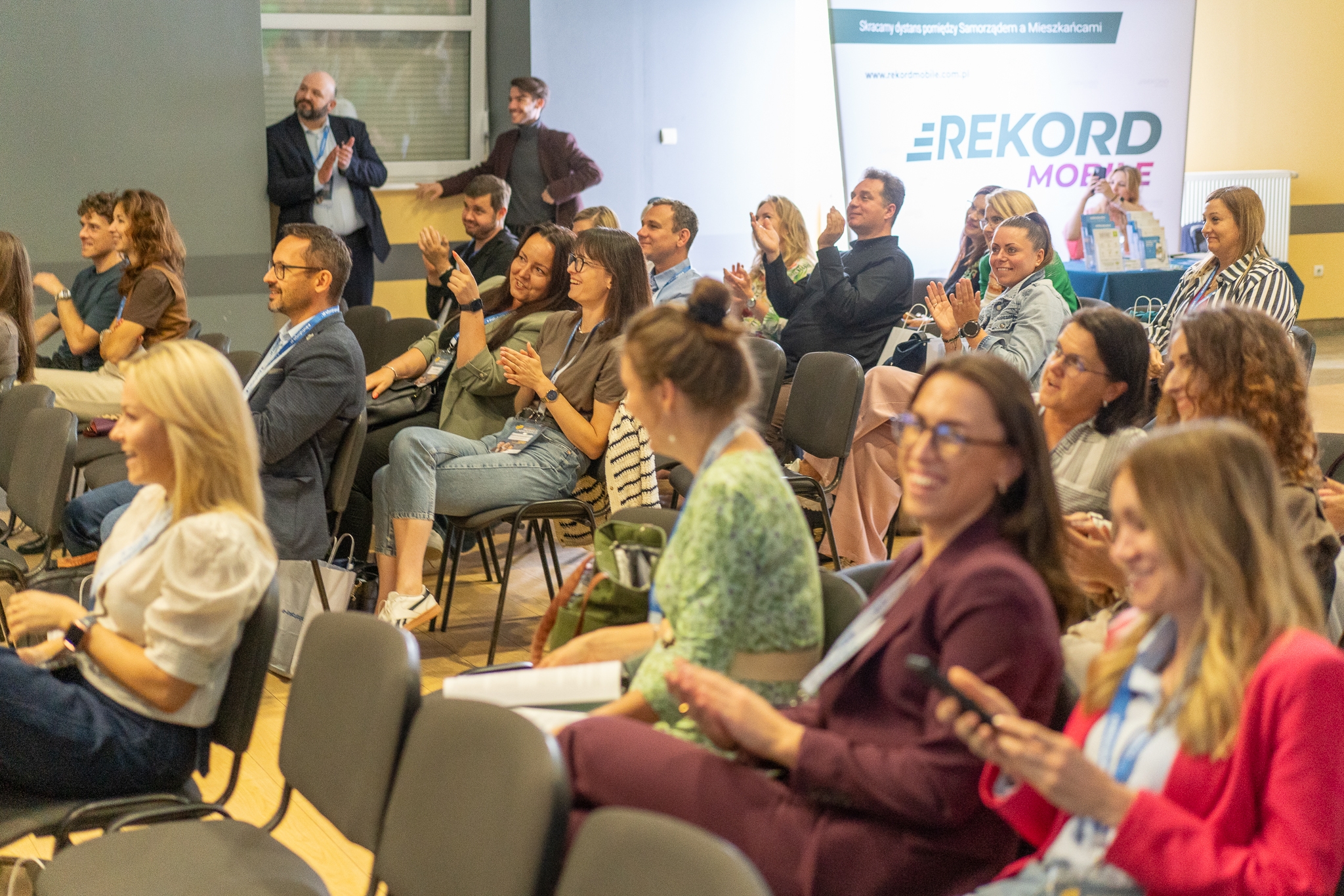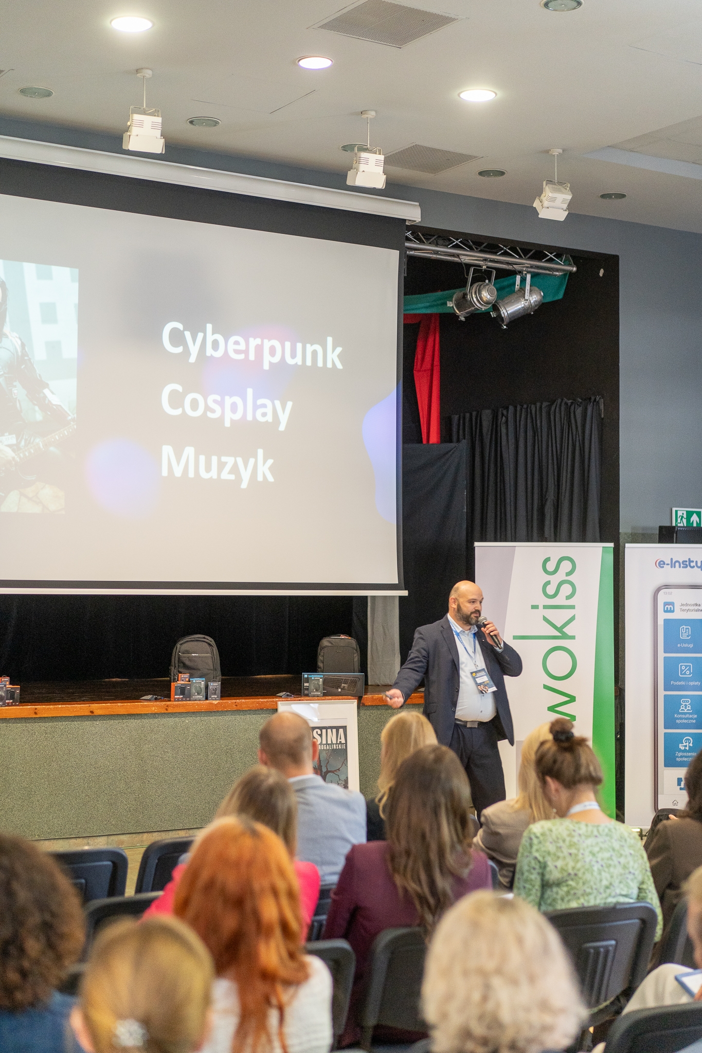 Program wydarzenia obejmował wystąpienia praktyków z różnych dziedzin. Artur Krysztofiak mówił o nadchodzącej zmianie w promocji JST, gdzie sztuczna inteligencja może obniżyć koszty i ułatwić codzienną pracę. Jakub Haremza zwrócił uwagę na rolę graficznej tożsamości miejscowości, a Iwona Kalitan-Młodkowska pokazała, jak obraz staje się pełnoprawnym narzędziem komunikacji. Karolina Chrząszcz podjęła niezwykle aktualny temat – jak dotrzeć do mieszkańców w czasach nadmiaru informacji, kiedy uwaga odbiorców jest coraz bardziej ograniczona. Iwona Kowalska zaprezentowała natomiast praktyczne rozwiązania oferowane przez platformę e-Instytucja.pl, pokazując, jak narzędzia cyfrowe mogą wspierać nowoczesną administrację.