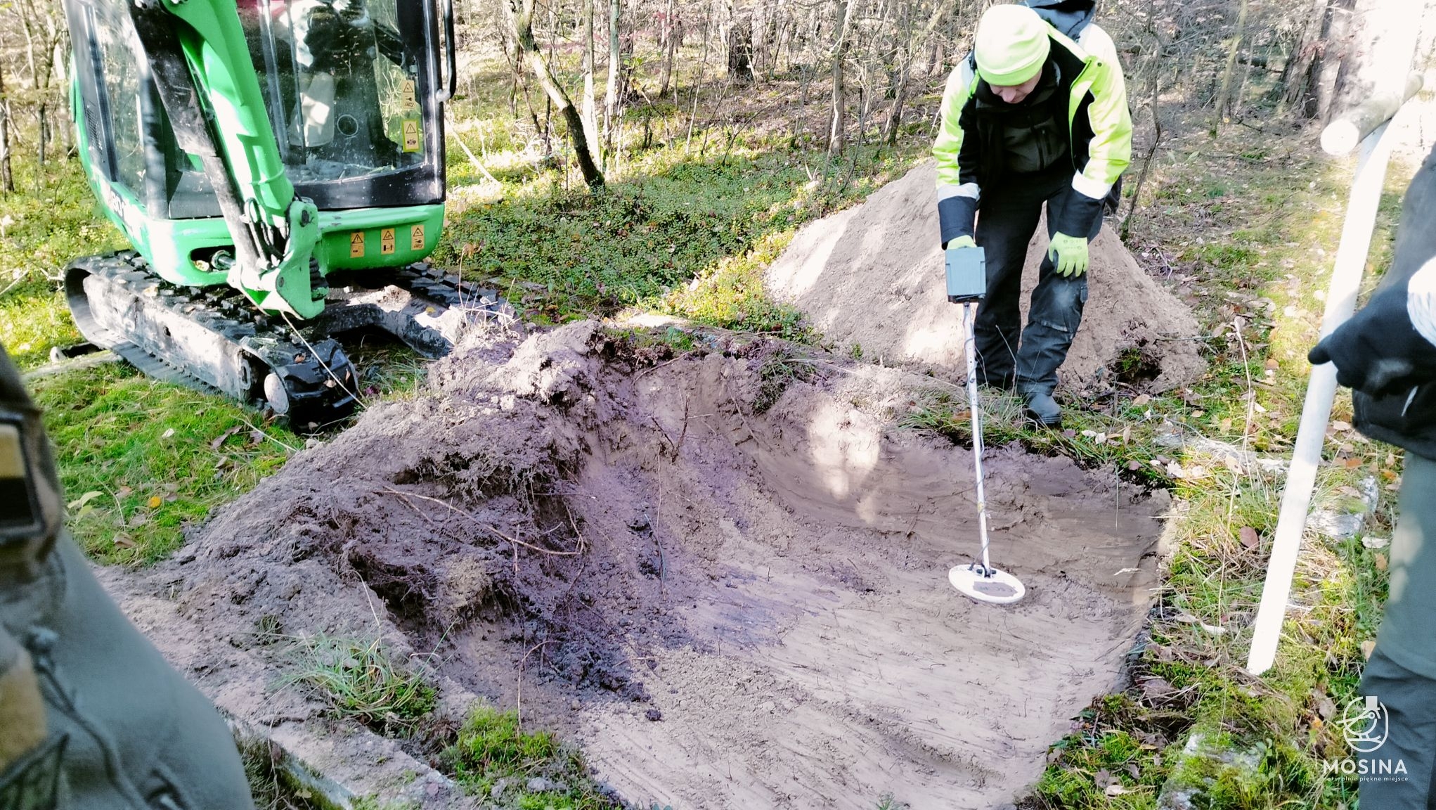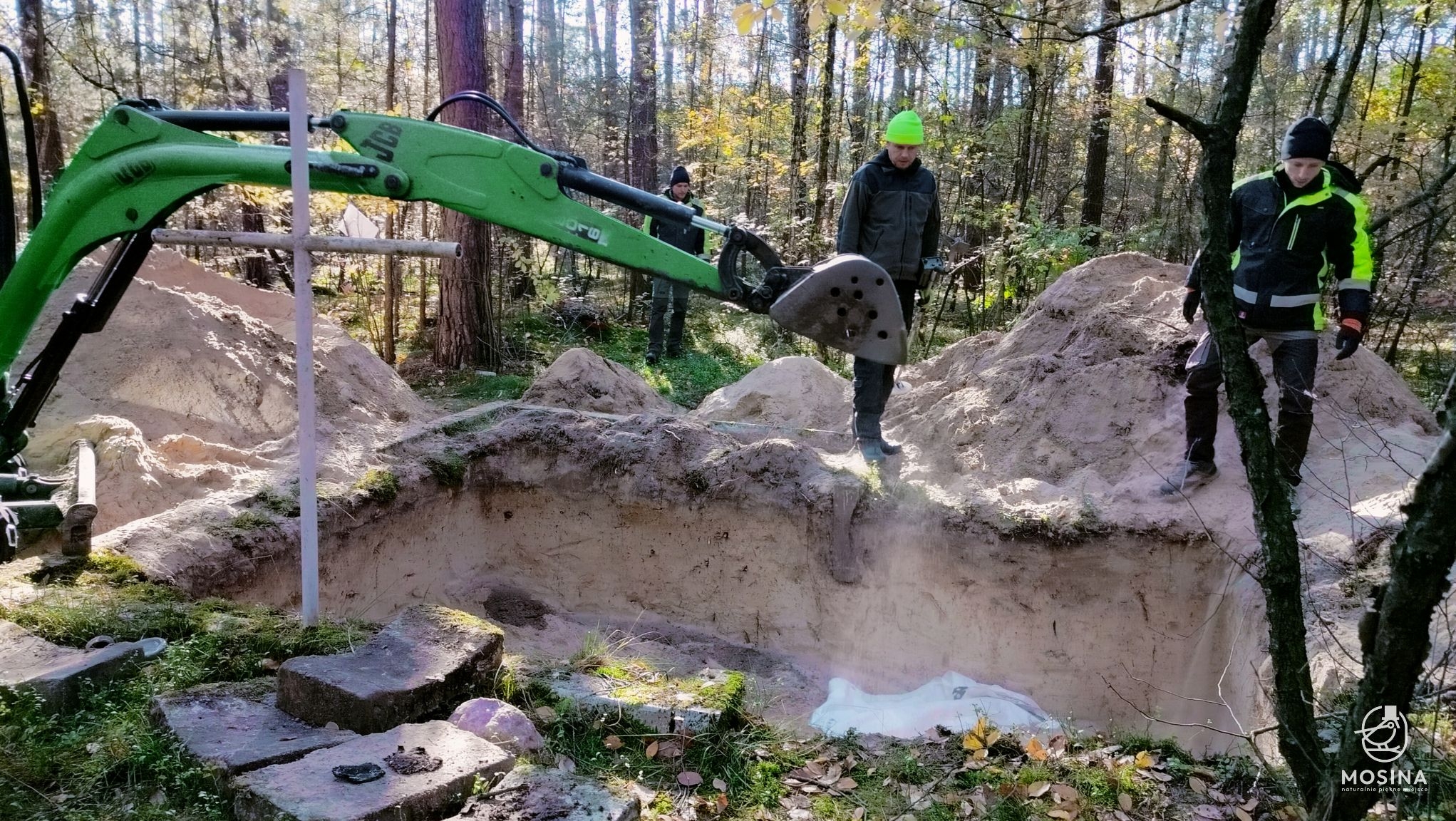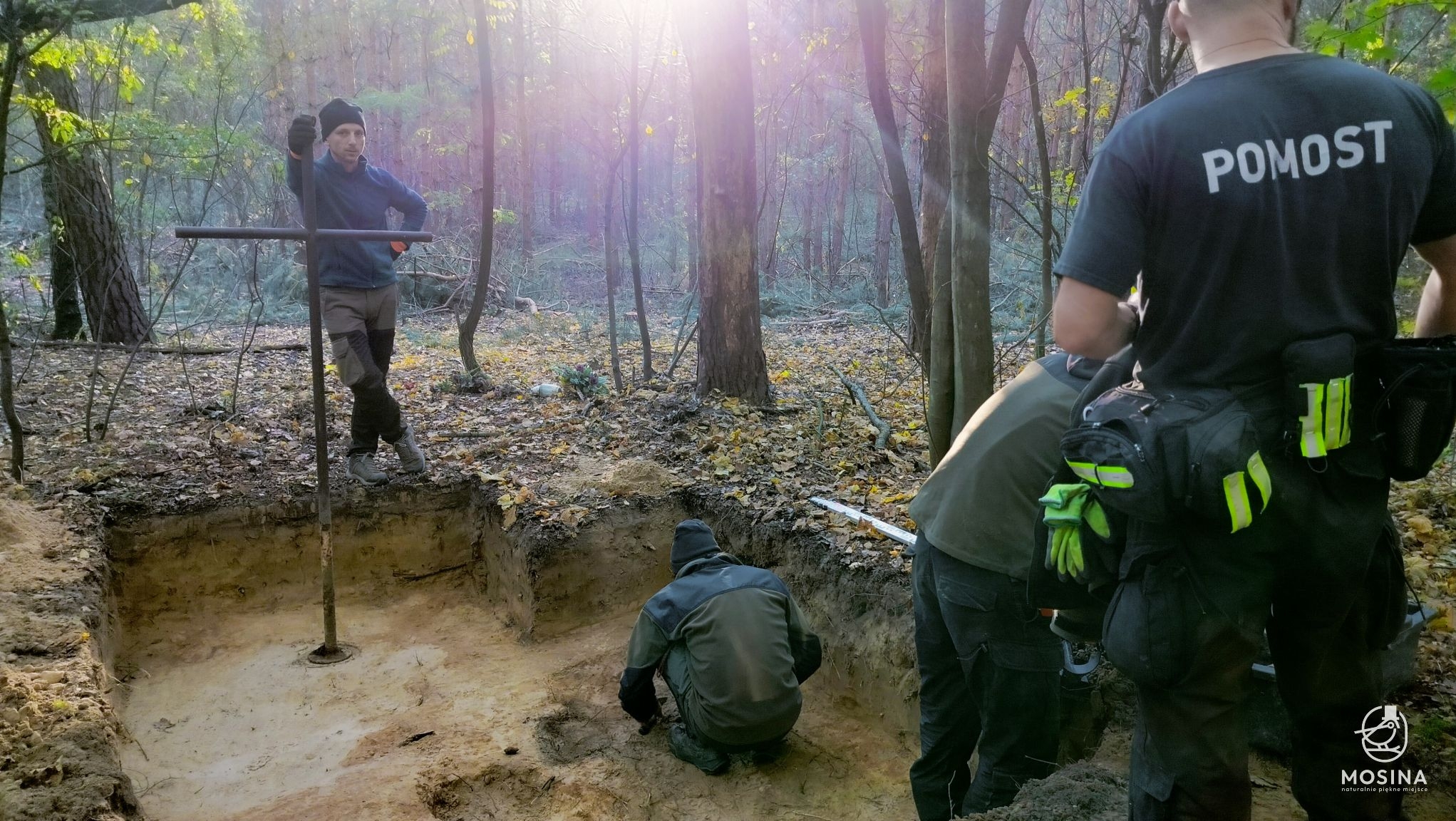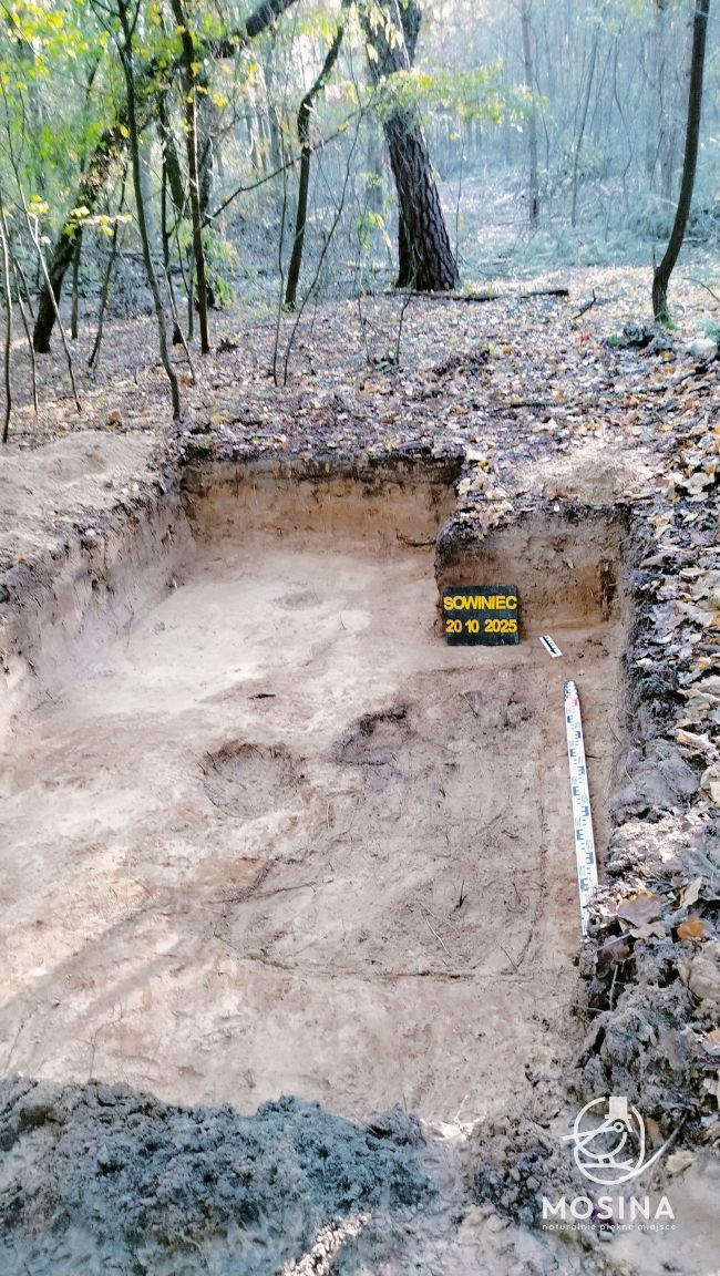 Wczoraj, 20 października, na dwóch grobach położonych w lasach Nadleśnictwa Konstantynowo w okolicach Sowińca przeprowadzone zostały badania archeologiczne i antropologiczne mające potwierdzić wojenny charakter tych mogił. Badania na zlecenie Gminy Mosina przeprowadziła Pracownia Badań Historycznych i Archeologicznych POMOST. W pracach badawczych uczestniczył Tomasz Czabański – dyrektor Pracowni wraz z grupą historyków i archeologów pod kierownictwem dra Marcina Michalskiego. Z ramienia Nadleśnictwa Konstantynowo na miejscu obecny był podleśniczy Leśnictwa Grzybno Michał Tęgos. To przedsięwzięcie jest wynikiem wcześniej zawartego przez Gminę Mosina porozumienia z Wojewodą Wielkopolskim w sprawie powierzenia jej zadania utrzymania grobów i cmentarzy wojennych w roku 2025 i udzielonej przez Wojewodę na ten cel dotacji.