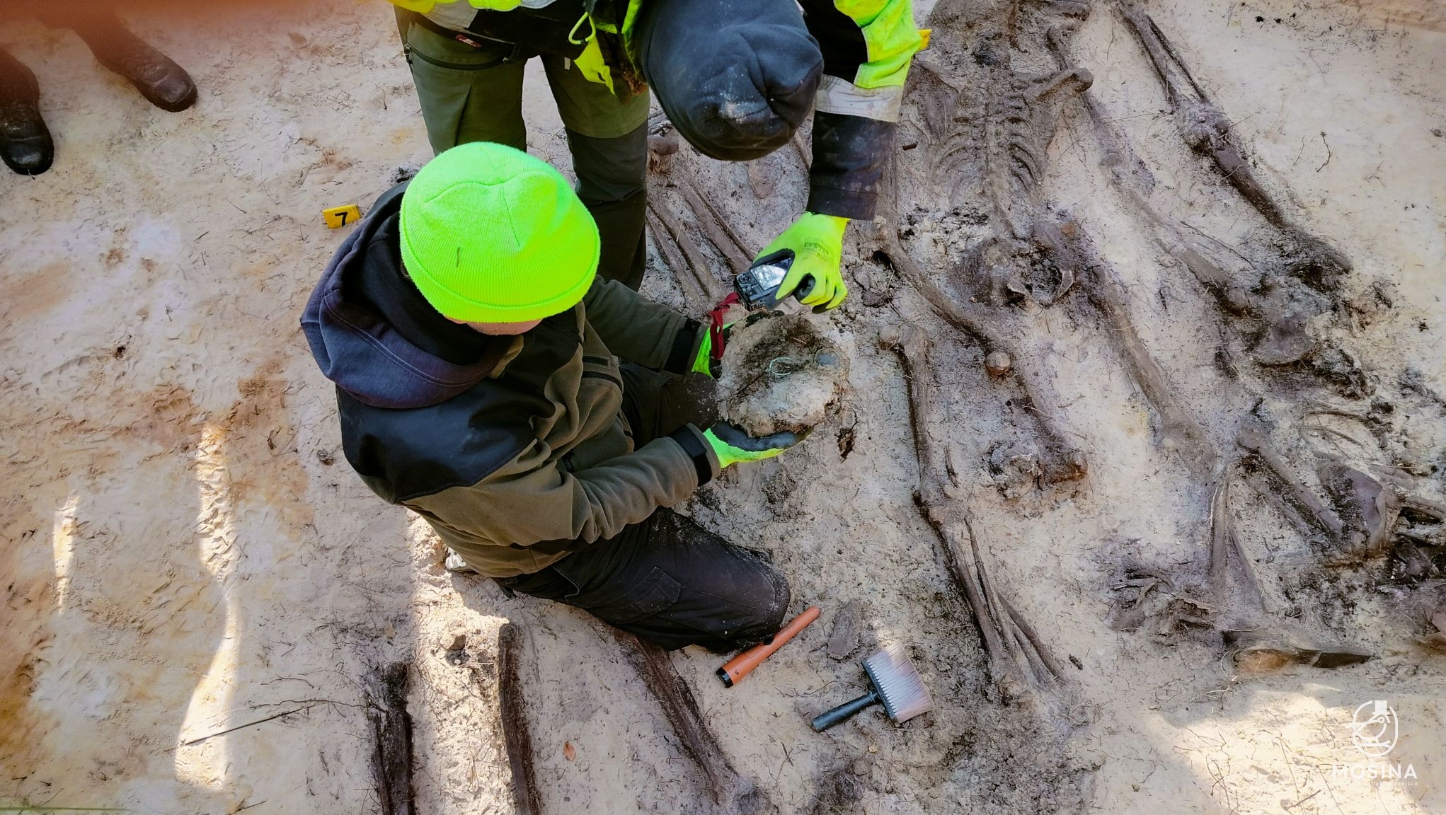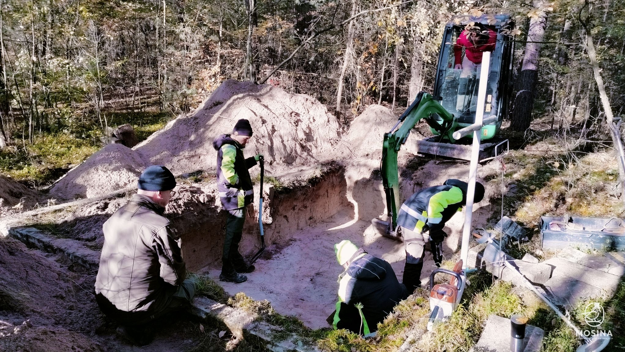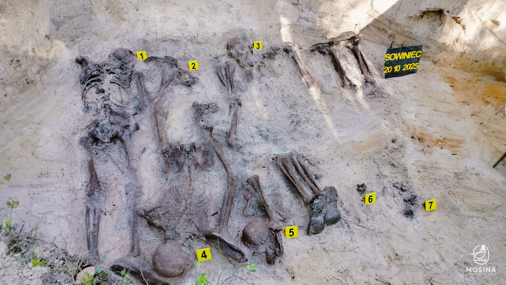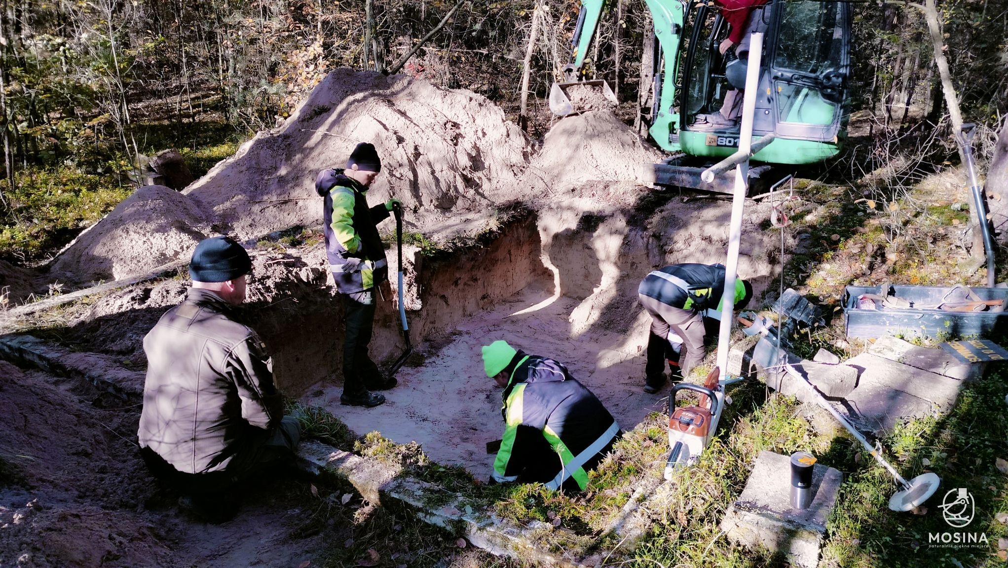 Wczoraj, 20 października, na dwóch grobach położonych w lasach Nadleśnictwa Konstantynowo w okolicach Sowińca przeprowadzone zostały badania archeologiczne i antropologiczne mające potwierdzić wojenny charakter tych mogił. Badania na zlecenie Gminy Mosina przeprowadziła Pracownia Badań Historycznych i Archeologicznych POMOST. W pracach badawczych uczestniczył Tomasz Czabański – dyrektor Pracowni wraz z grupą historyków i archeologów pod kierownictwem dra Marcina Michalskiego. Z ramienia Nadleśnictwa Konstantynowo na miejscu obecny był podleśniczy Leśnictwa Grzybno Michał Tęgos. To przedsięwzięcie jest wynikiem wcześniej zawartego przez Gminę Mosina porozumienia z Wojewodą Wielkopolskim w sprawie powierzenia jej zadania utrzymania grobów i cmentarzy wojennych w roku 2025 i udzielonej przez Wojewodę na ten cel dotacji.