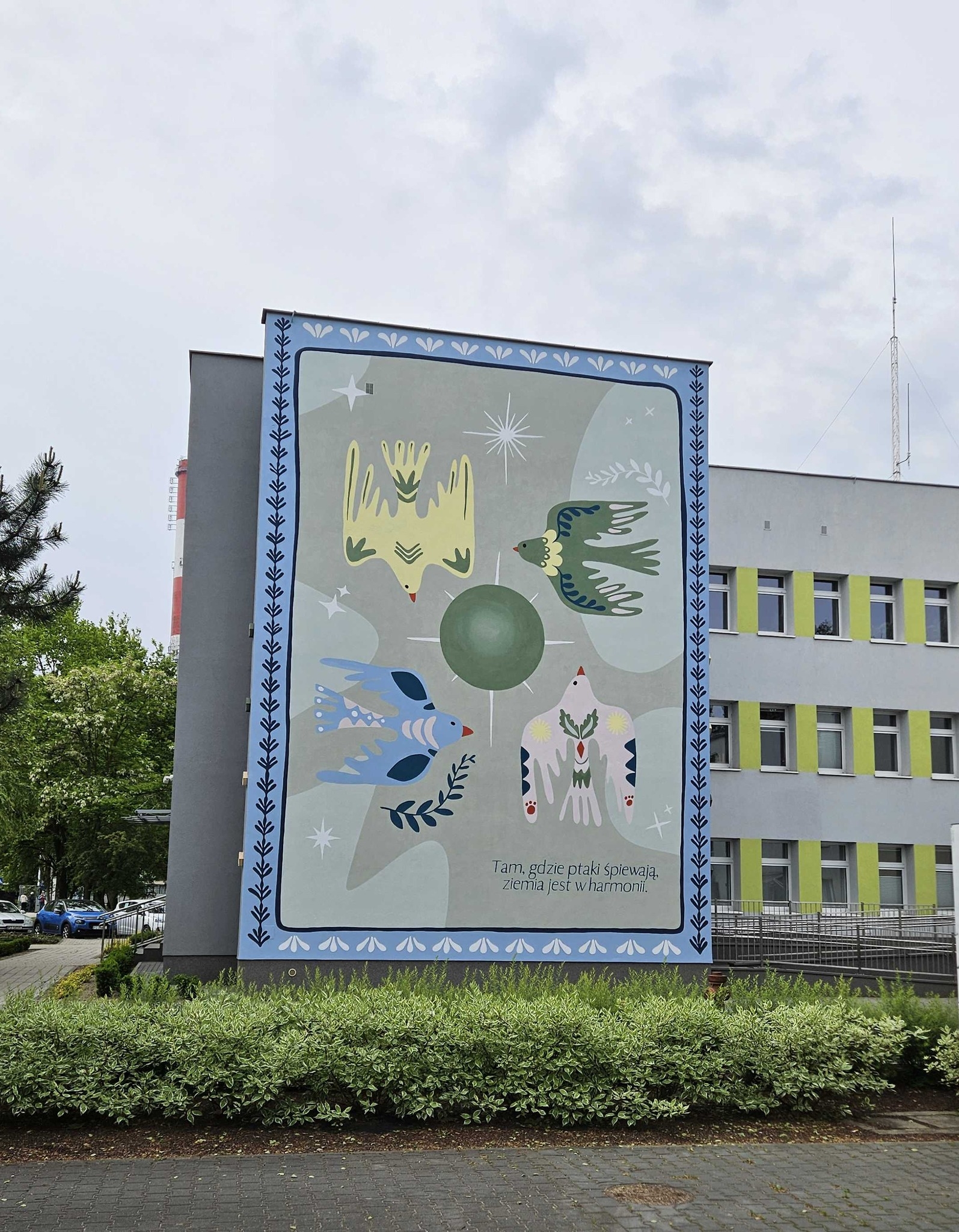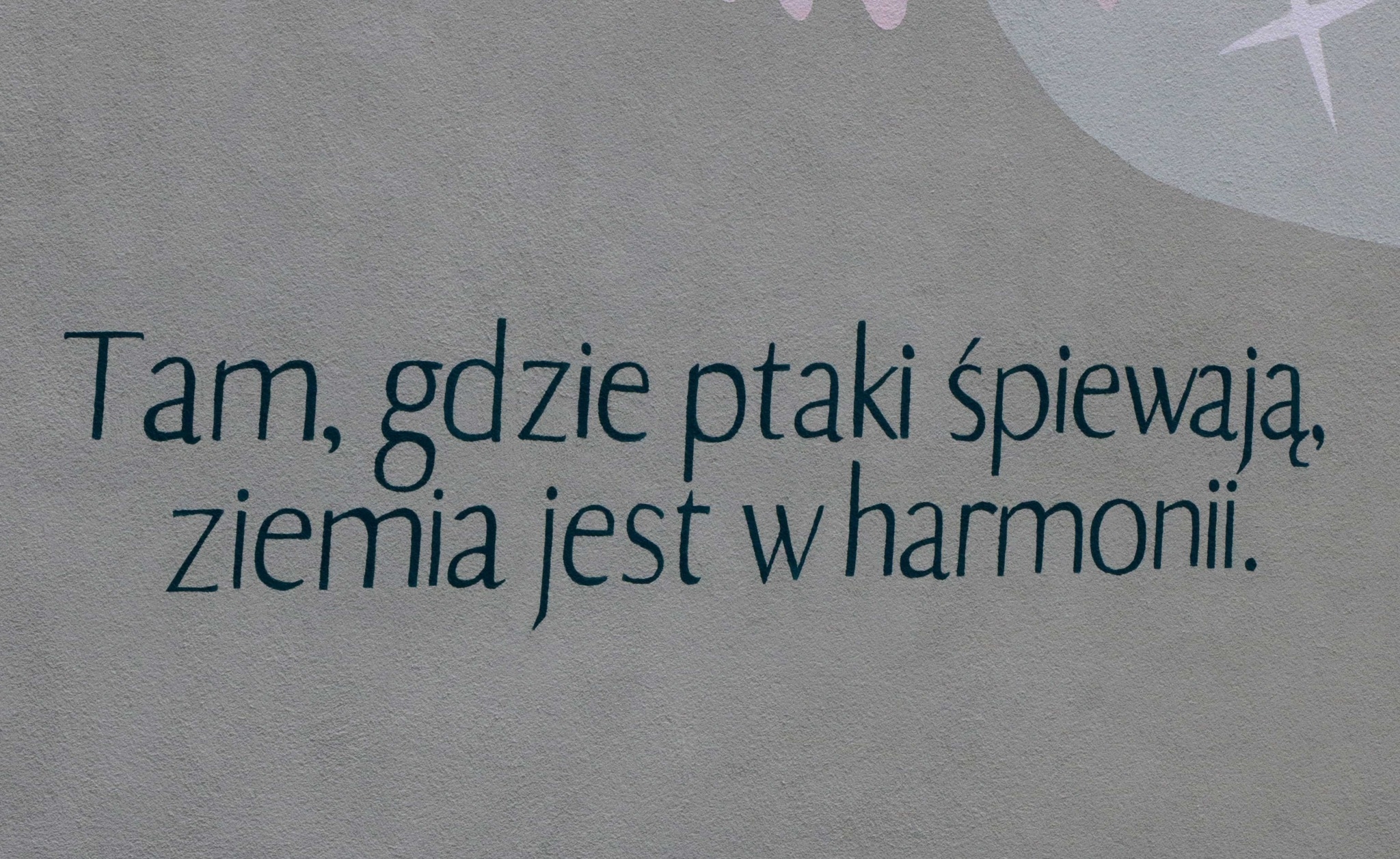 Hasło towarzyszące muralowi – „Tam, gdzie ptaki śpiewają, ziemia jest w harmonii” – otwiera przestrzeń do wielowymiarowej interpretacji. Ptaki śpiewają tylko tam, gdzie czują się bezpiecznie. Ich obecność i aktywność stanowią naturalny wskaźnik jakości środowiska. Dlatego właśnie ich śpiew – lub jego brak – bywa dziś dla naukowców cenną informacją o stanie ekosystemów.