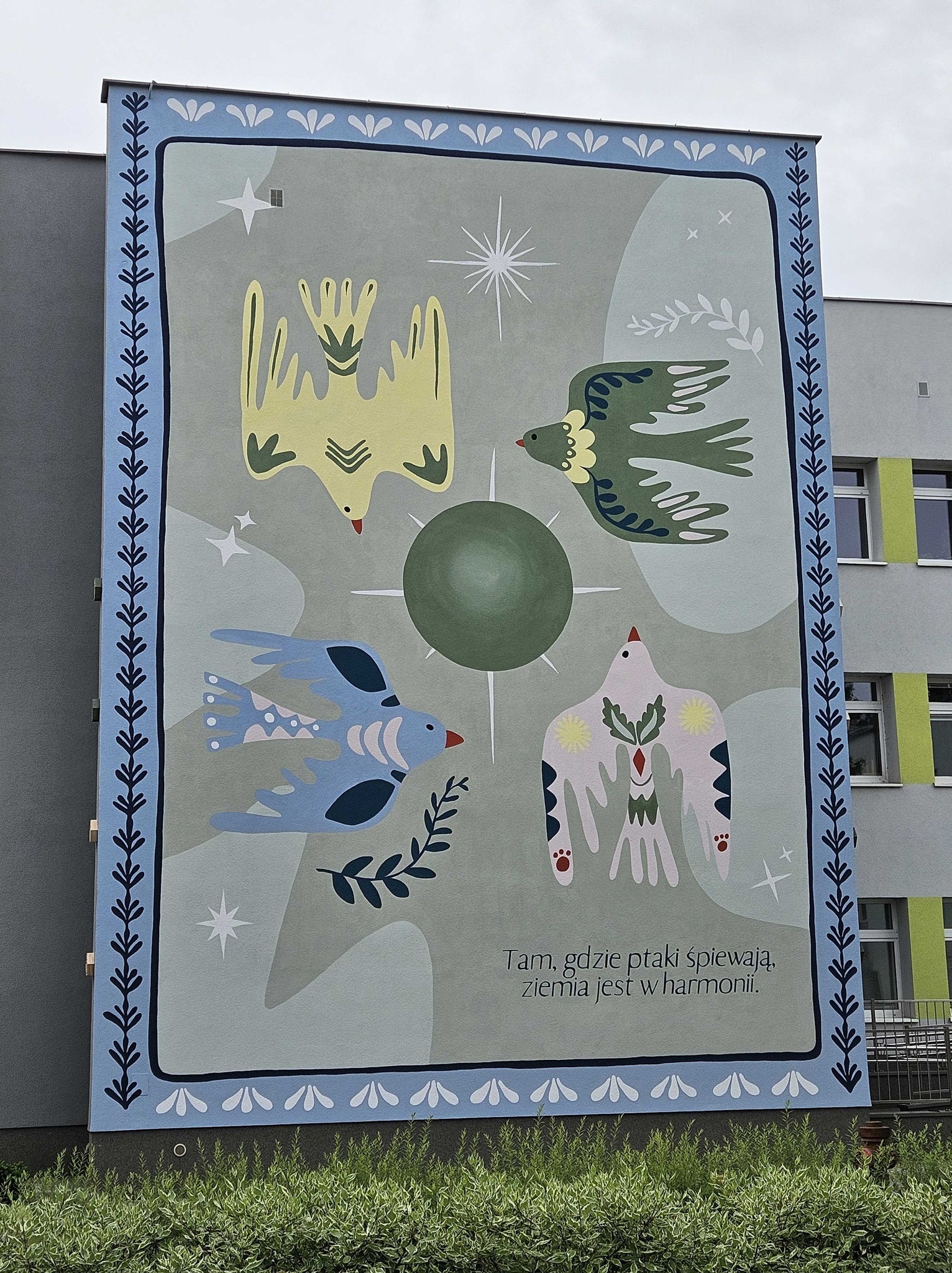 „Tam, gdzie ptaki śpiewają…” – nowy mural na budynku Urzędu