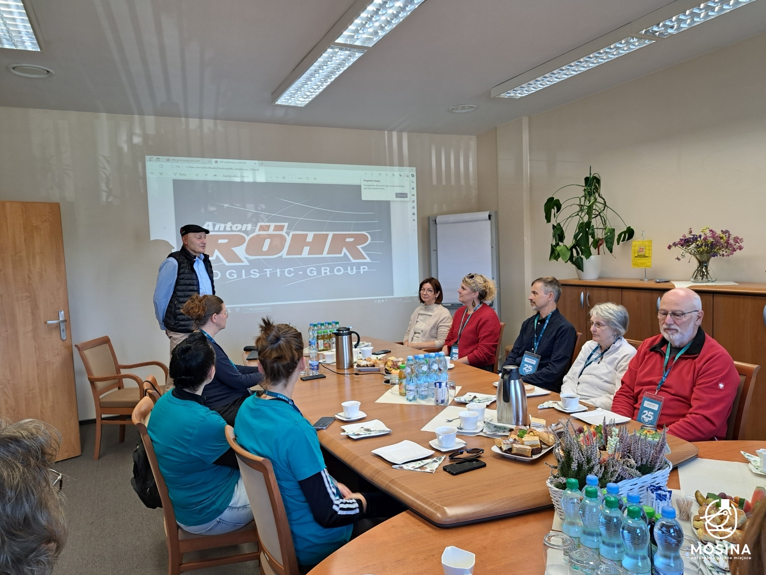 Goście z Niemiec mieli okazję odwiedzić dwie firmy działające na terenie gminy Mosina: Anton Röhr Logistyka oraz Wielkopolski Indyk. Choć działają w zupełnie różnych branżach – logistyce meblowej i przetwórstwie mięsnym, obie pokazują, że w naszej gminie istnieją przedsiębiorstwa, które z powodzeniem funkcjonują na rynkach krajowych i zagranicznych. Anton Röhr Logistyka - firma od lat specjalizuje się w kompleksowej obsłudze branży meblarskiej, a jej głównym zadaniem jest magazynowanie, kompletowanie i wysyłka mebli na rynek polski i europejski. Goście zostali oprowadzeni po halach magazynowych – zobaczyli regały wysokiego składowania, nowoczesne systemy transportu wewnętrznego oraz strefy pakowania i załadunku.