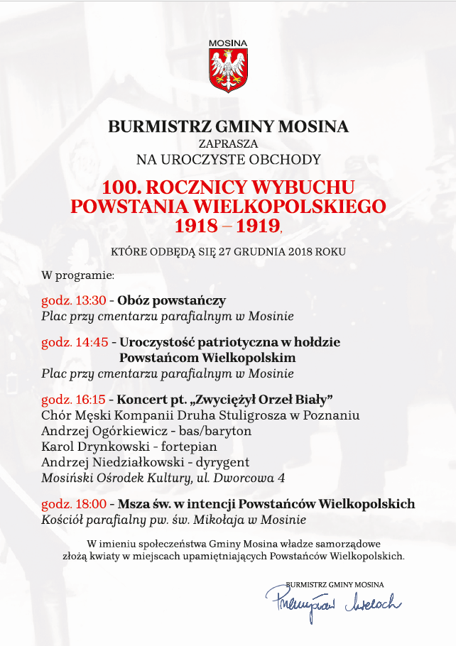 ZAPROSZENIE NA OBCHODY 100-LECIA WYBUCHU POWSTANIA WIELKOPOLSKIEGO