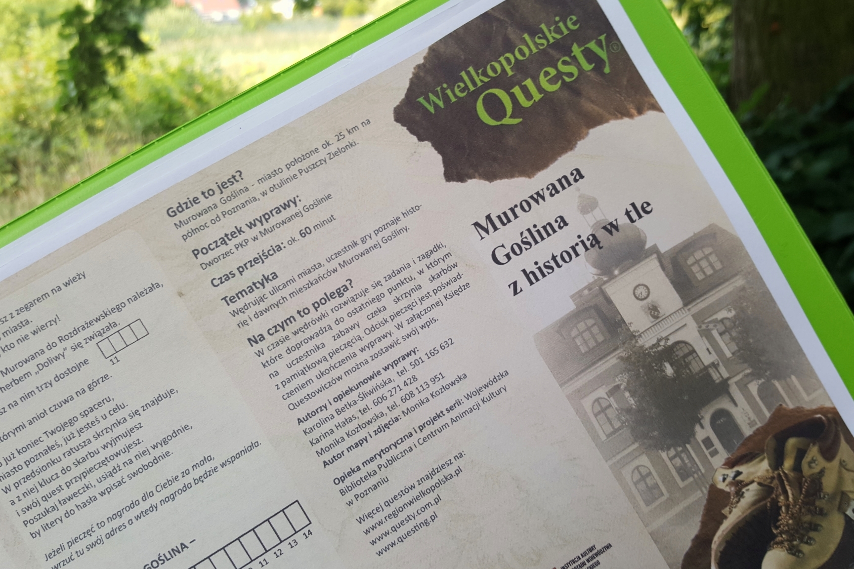 Questy to po prostu… poszukiwanie skarbów. Korzystając z wierszowanych wskazówek trzeba znaleźć właściwą trasę i – rozwiązując zagadki – dotrzeć do miejsca ukrycia skrzyneczki ze specjalną pieczęcią. Przy okazji poznając losy klasztoru w Owińskach, niezwykłą historię założenia Golęczewa albo tajemnice pałacu Jankowice. Na podobny spacer, który zazwyczaj trwa około godziny, zapraszają też Mosina i Murowana Goślina. Dodatkową mobilizacją do zaliczania kolejnych tras może być zdobywanie Odznaki Odkrywców Tajemnic i upominków w ramach akcji Na tropie skarbów.