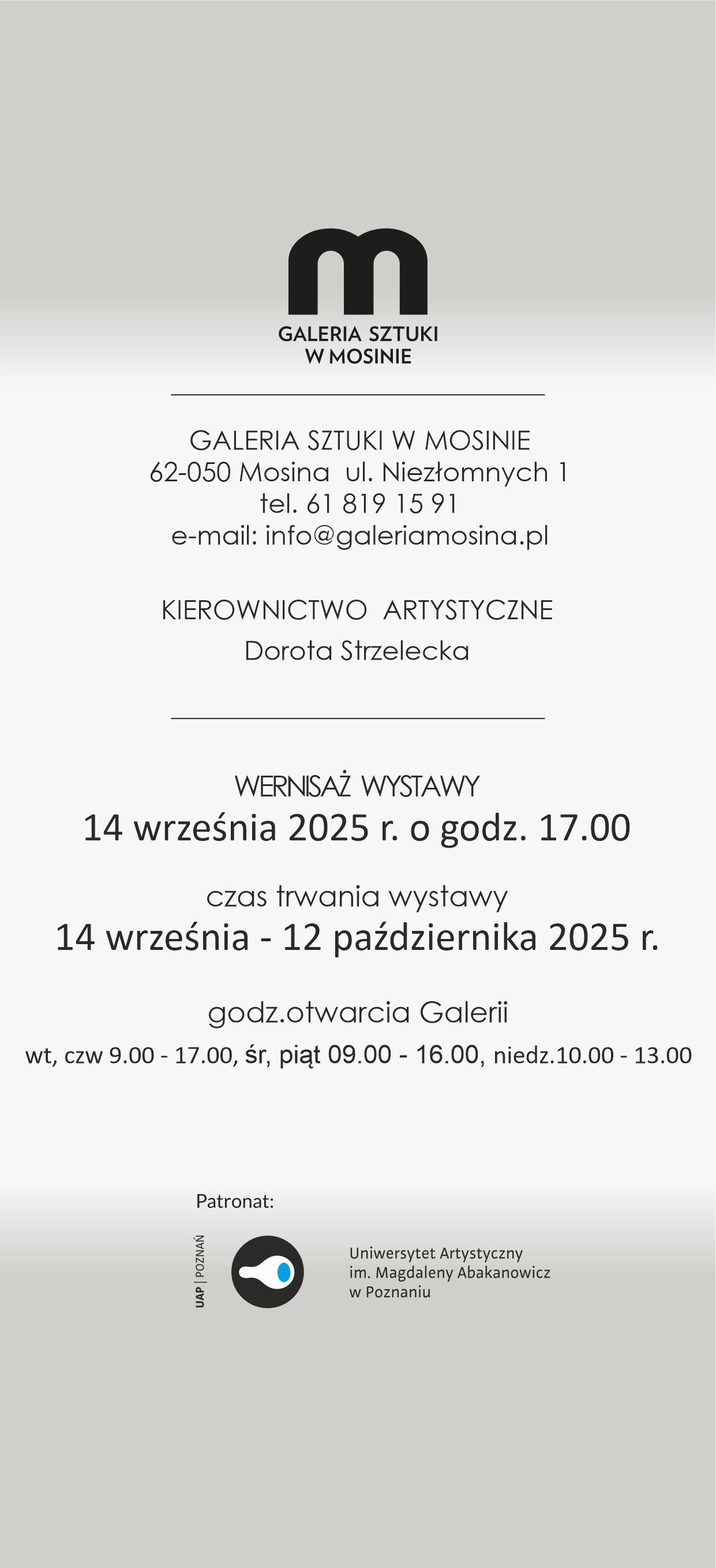 A już 14 września o godz. 17:00 Galeria zaprasza na pierwszy po powrocie wernisaż: