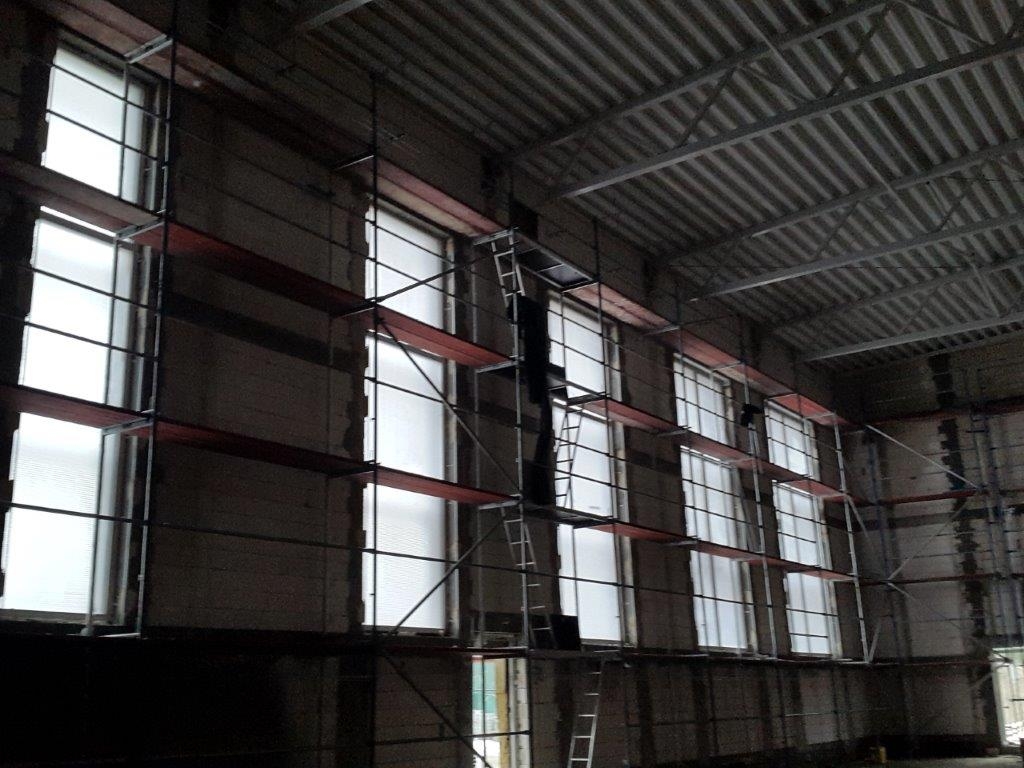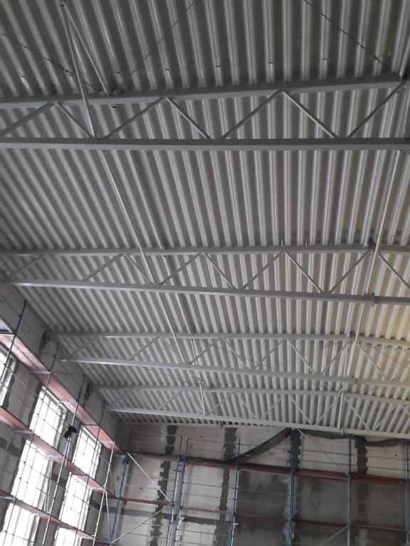 Trwa budowa hali sportowej, która obecnie znajduje się w stanie surowym zamkniętym.