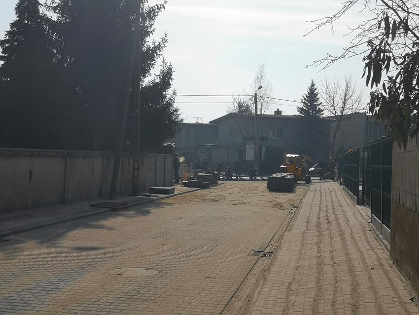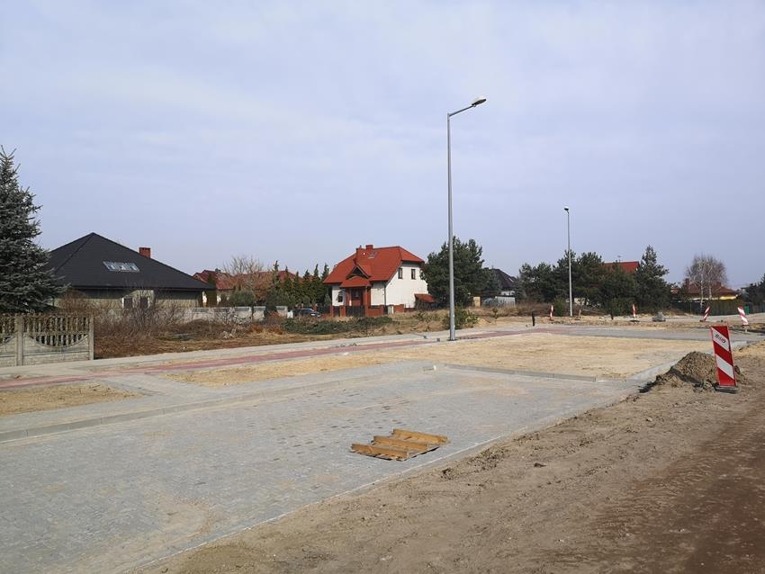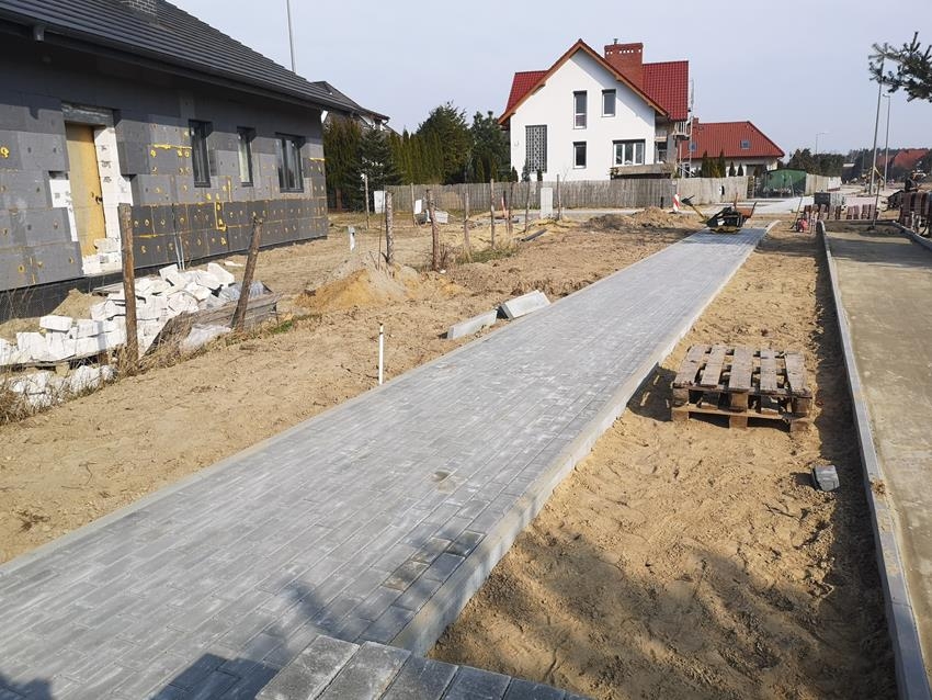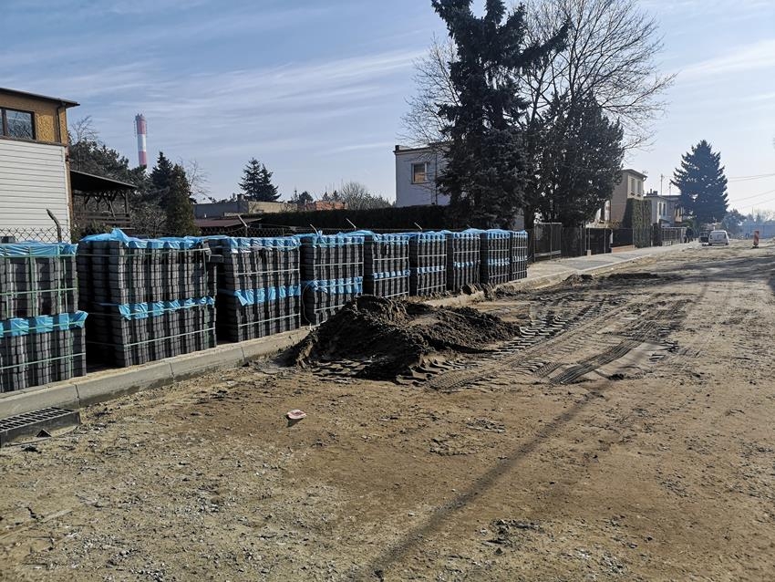- ul. Brzechwy: chodniki w trakcie budowy, zakończono budowę chodnika po jednej stronie ulicy, trwa budowa chodnika po drugiej stronie,