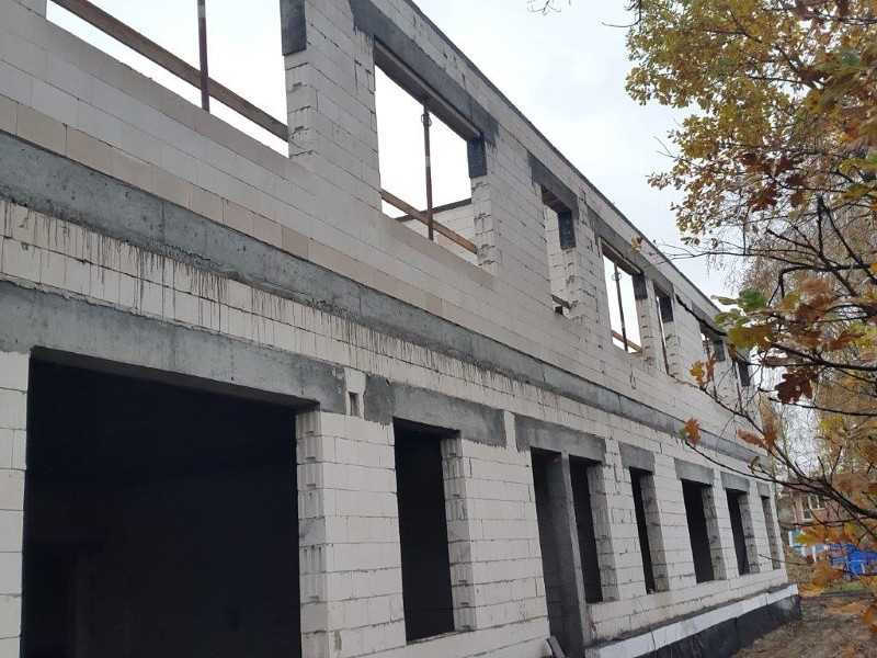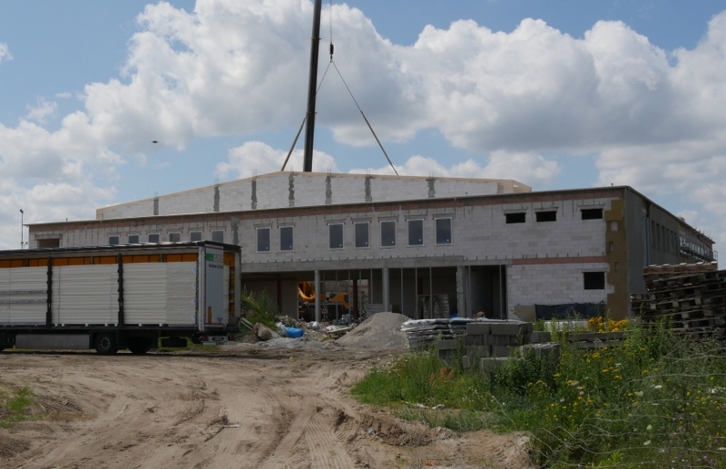 Budynek ma już drugą kondygnację. Założono na niej strop i rozpoczęła się budowa murów trzeciej kondygnacji.