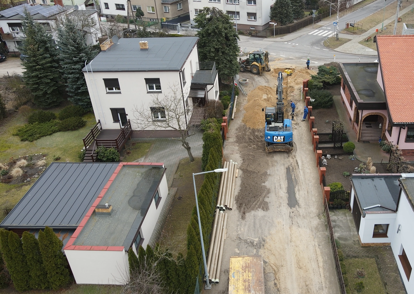 Trwa budowa ul. Gruszkowej w Mosinie. Zadanie polega na: