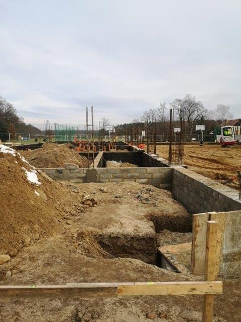 Trwa rozbudowa Szkoły Podstawowej w Rogalinie o salę gimnastyczną wraz z infrastrukturą towarzyszącą. Wybudowane zostały fundamenty, a obecnie wznoszone są mury nowego obiektu. W ramach tej inwestycji powstaje budynek o kubaturze 9 716,9 m3 z powierzchnią użytkową 1 053,3 m2.