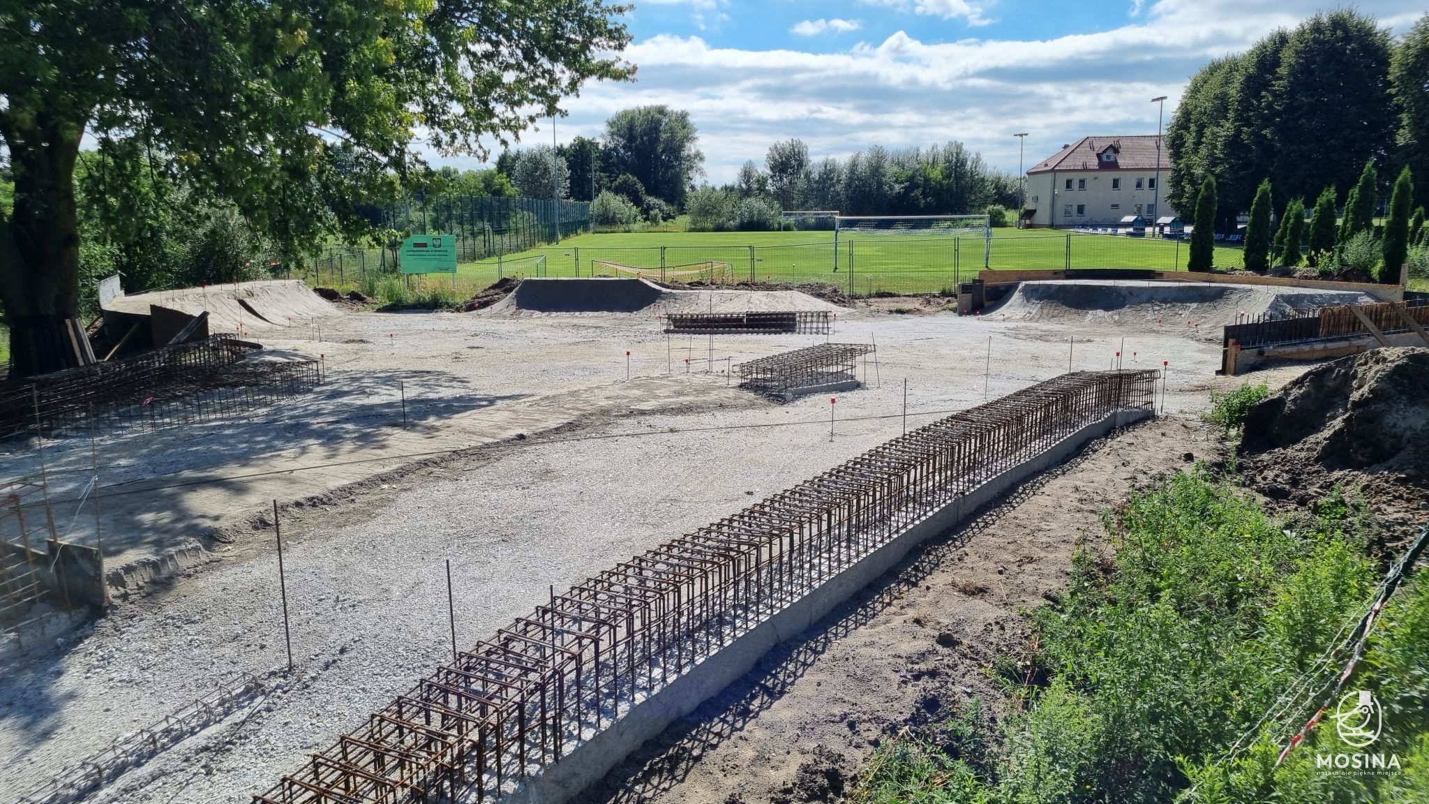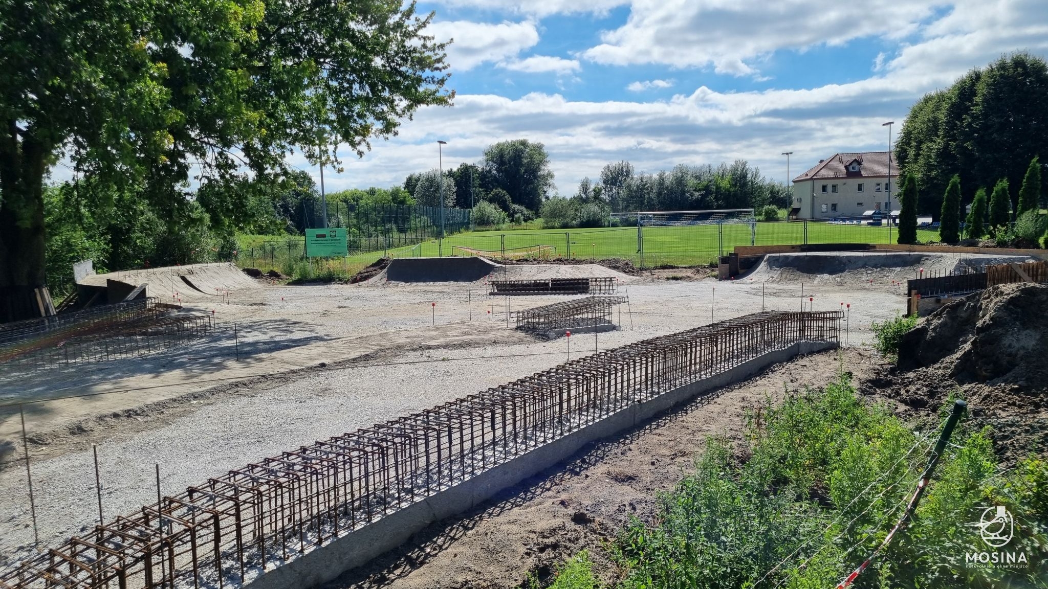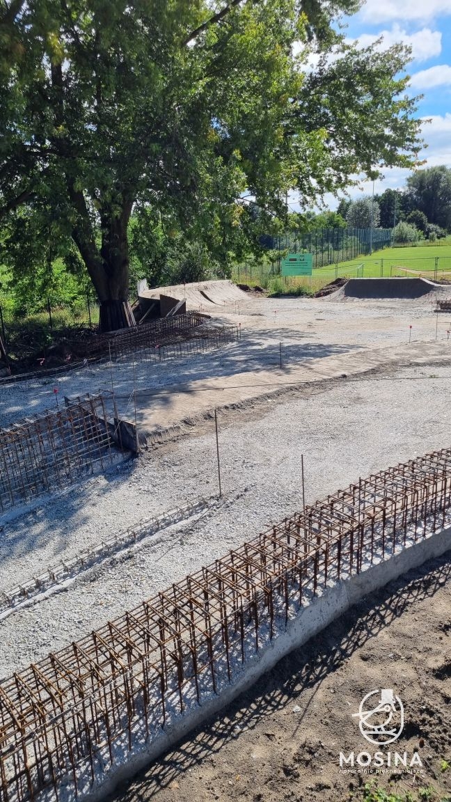 Przy stadionie Ośrodka Sportu i Rekreacji w Mosinie trwa budowa skateparku. Projekt obejmuje wykonanie płyty betonowej oraz urządzeń w technologii wodoodpornego betonu zbrojonego. Przeszkody, murki i rampy są ukształtowane z żelbetu i wyposażone w elementy uzupełniające wykonane ze stali.