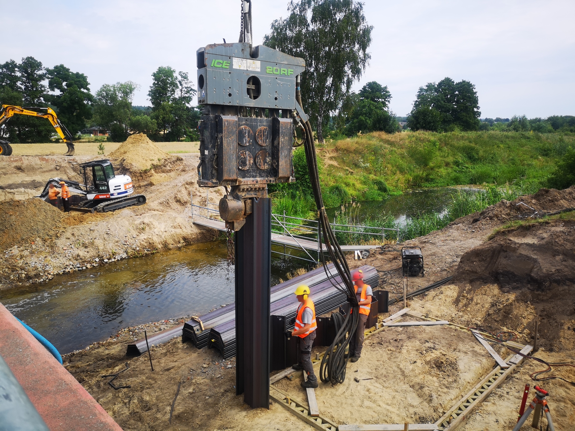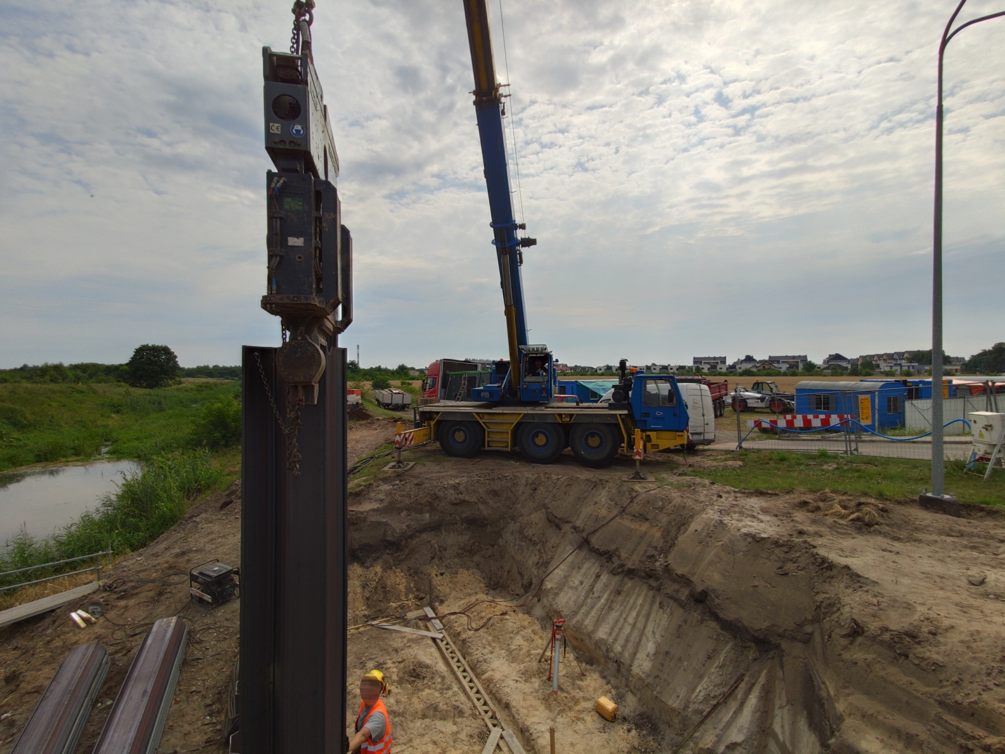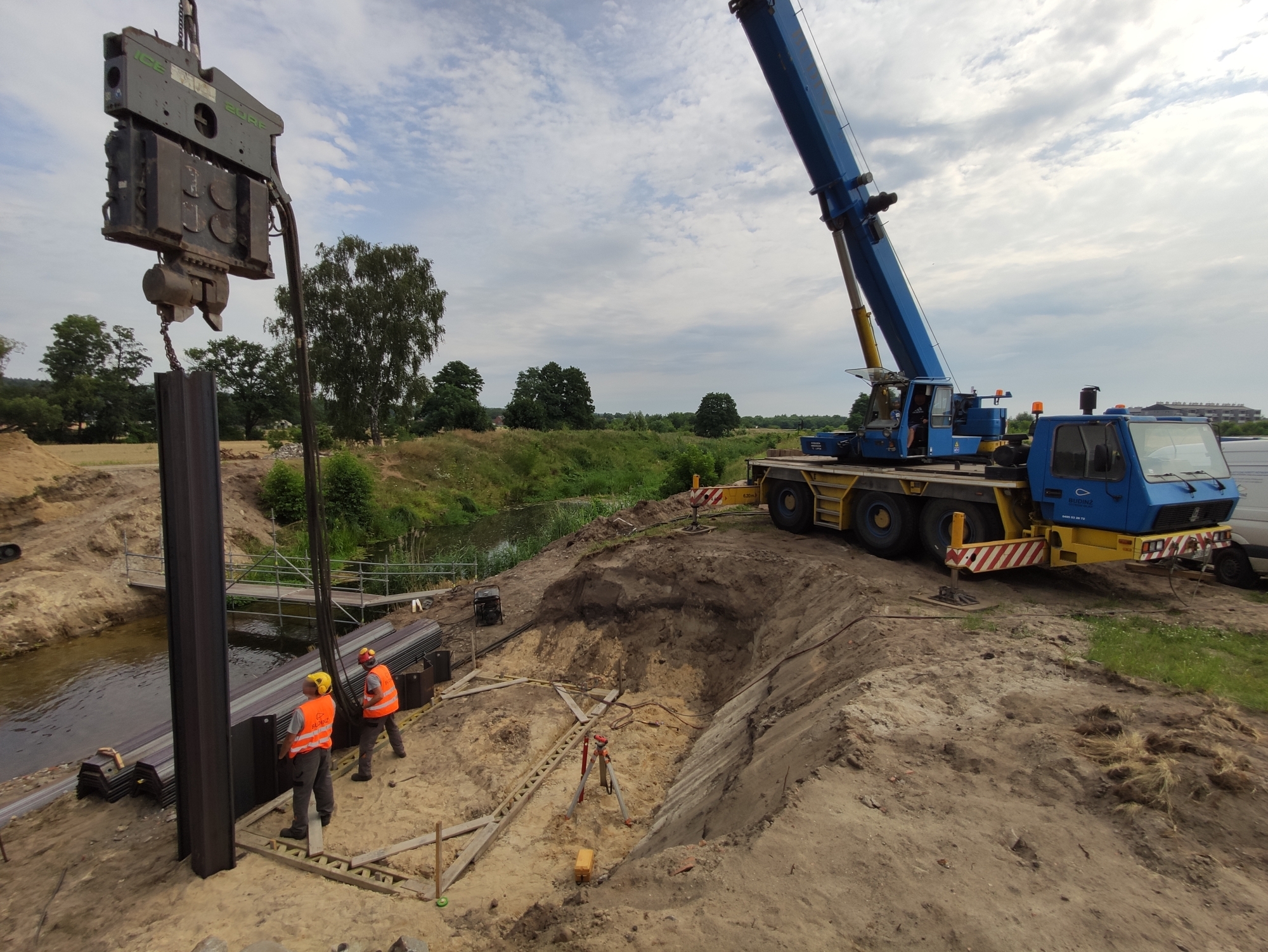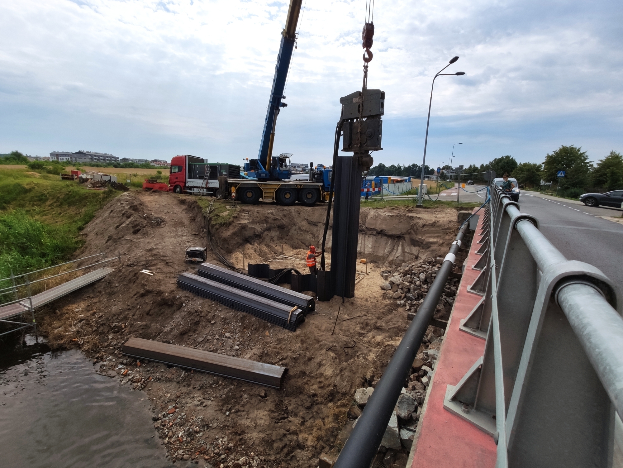 Trwa budowa kładki pieszo-rowerowej w ciągu ul. Lipowej w Krosinku. Obecnie wykonywane jest posadowienie jej fundamentów.