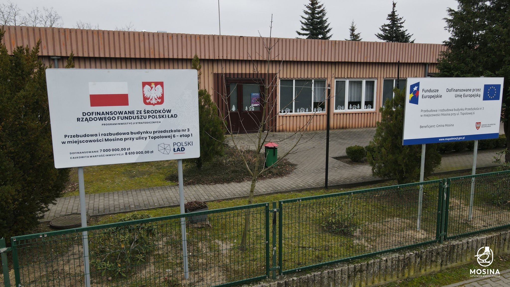 Etap 2: Dofinansowanie w wysokości 1 221 015,03 zł w ramach Programu MALUCH+ (rozbudowa o część żłobkową) oraz funkcjonowanie żłobka: 902 880 zł przez okres 36 miesięcy. Dofinansowanie w wysokości 3 069 214,97 zł na rozbudowę części przedszkolnej w ramach Programu Fundusze Europejskie dla Wielkopolski 2021-2027.