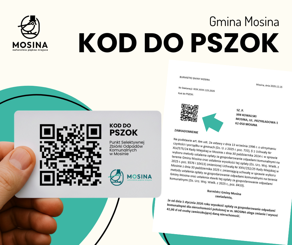 Jeśli masz Mosińską Kartę Mieszkańca, jej numer jest zintegrowany z systemem PSZOK i służy jako kod QR uprawniający do korzystania z Punktu Selektywnej Zbiórki Odpadów Komunalnych. Wystarczy okazać kartę lub aplikację przy wjeździe do punktu.
