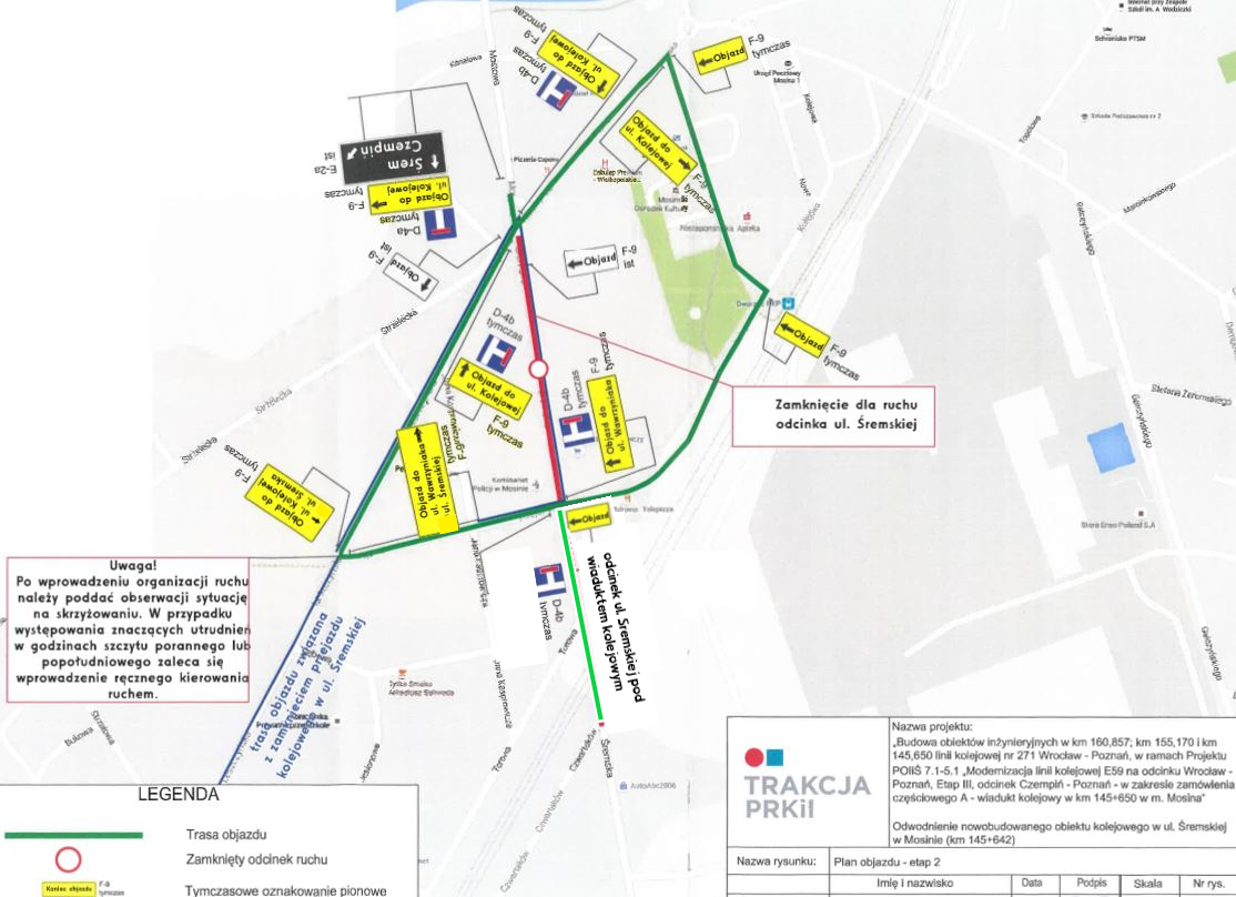 Do końca roku Inwestor PKP PLK S.A., będzie realizował budowę odwodnienia nowobudowanego obiektu kolejowego w ciągu ul. Śremskiej w Mosinie (do skrzyżowania ulic Mostowa – Leszczyńska – Wawrzyniaka – Śremska).