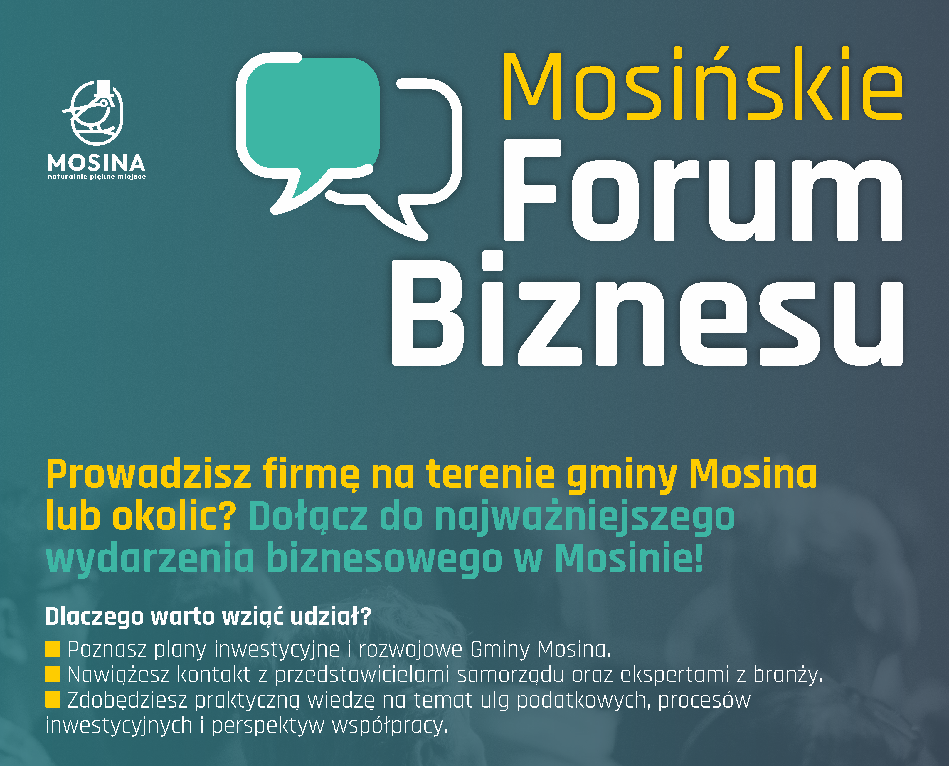 Mosińskie Forum Biznesu to okazja do wymiany dobrych praktyk między lokalnymi przedsiębiorcami, bieżącego kontaktu lokalnych przedsiębiorców z samorządem, przekazywania ważnych z poziomu rozwoju gminy informacji związanych m.in. z planowaniem przestrzennym, inwestycjami czy rozwiązaniami komunikacyjnymi oraz możliwościami pozyskiwania środków na wspieranie i rozwój przedsiębiorstw.