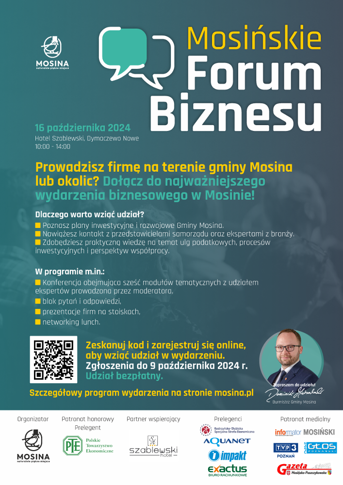 II Mosińskie Forum Biznesu w Mosinie odbędzie się 15 października 2025 r., w Mosińskim Ośrodku Kultury.