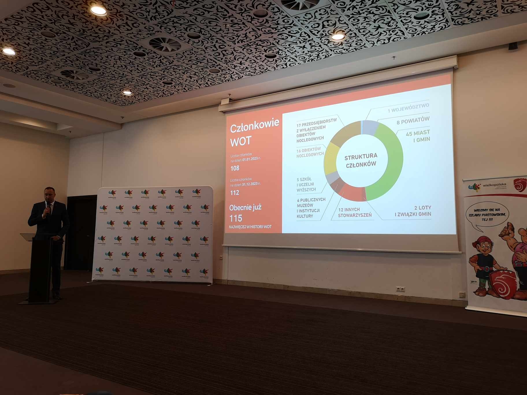 Wstępem do spotkania było wystąpienie prezesa WOT, Tomasza Wiktora, który podsumował 20 lat kampanii promocyjnych, targów, zrealizowanych projektów i innych akcji. Wszystko to zilustrowane zdjęciami z dwudziestolecia, z których część pamiętała jeszcze czasy aparatów analogowych. Wśród zaproszonych na tę okazję gości znalazły się były dyrektorki Wielkopolskiej Organizacji Turystycznej: pani Alina Bittner i pani Ewa Przydrożny.