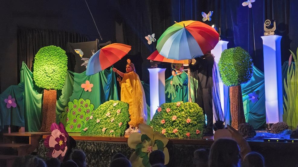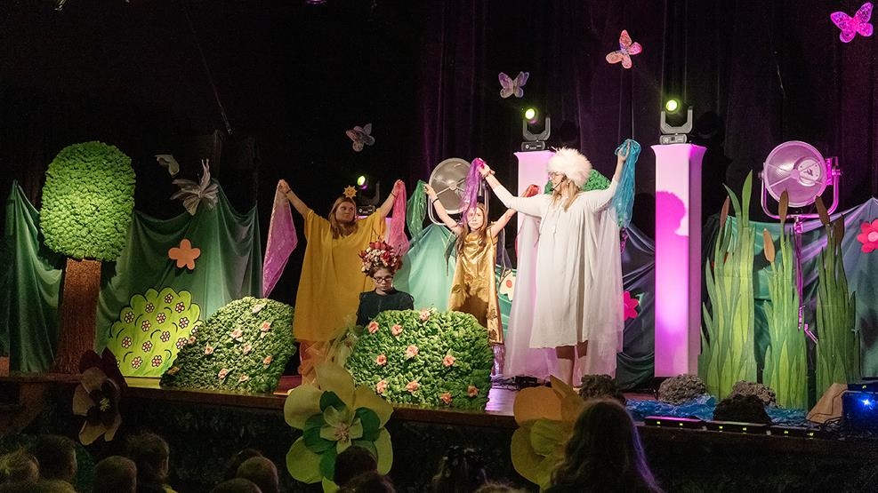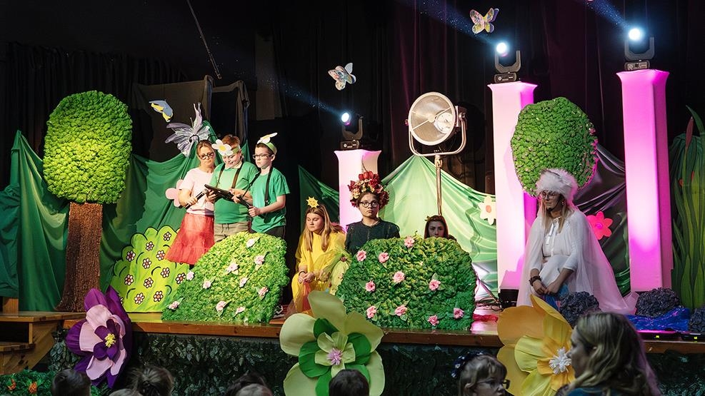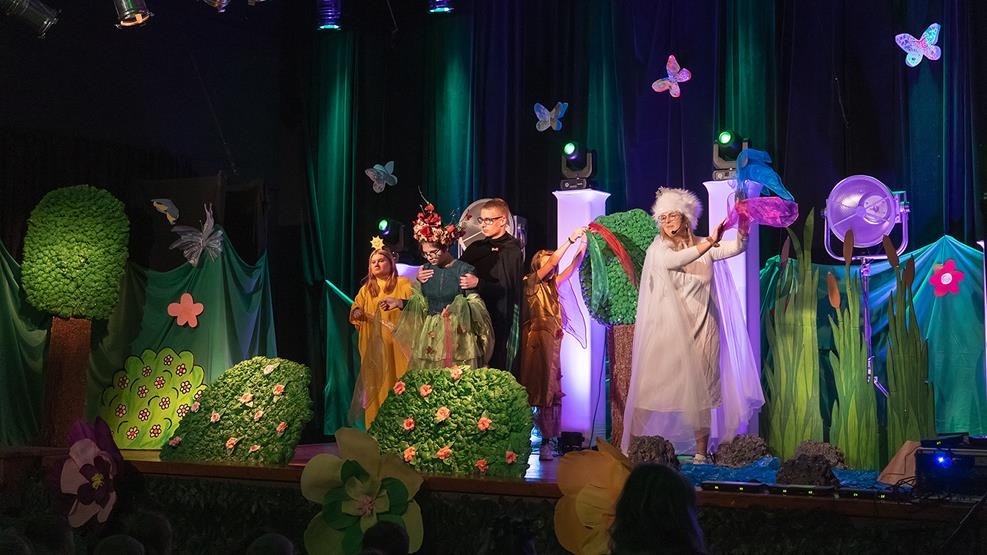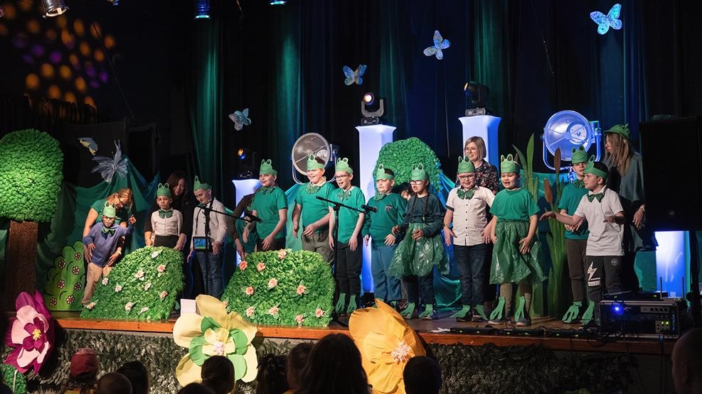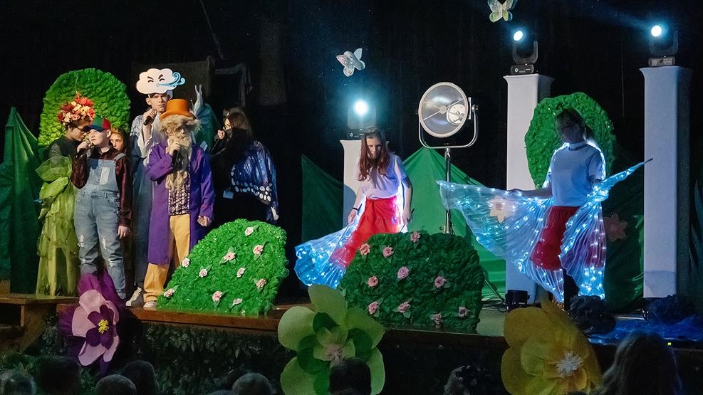 Po muzycznym wstępie na scenie zaprezentowali się wychowankowie internatu, którzy zaprezentowali niezwykłe przedstawienie pt. „W poszukiwaniu wiosny”. W barwnej opowieści główni bohaterowie wyruszyli w niezwykłą podróż, by odnaleźć porwaną przez chłodny cień Wiosnę. Ich wędrówka prowadziła przez Krainę Pór Roku i była pełna ciepła, przygód i ważnych przesłań. Wychowankowie nie tylko zagrali swoje role z ogromnym zaangażowaniem, podczas spektaklu tańczyli, śpiewali i czarowali publiczność swoim talentem, odwagą i radością.