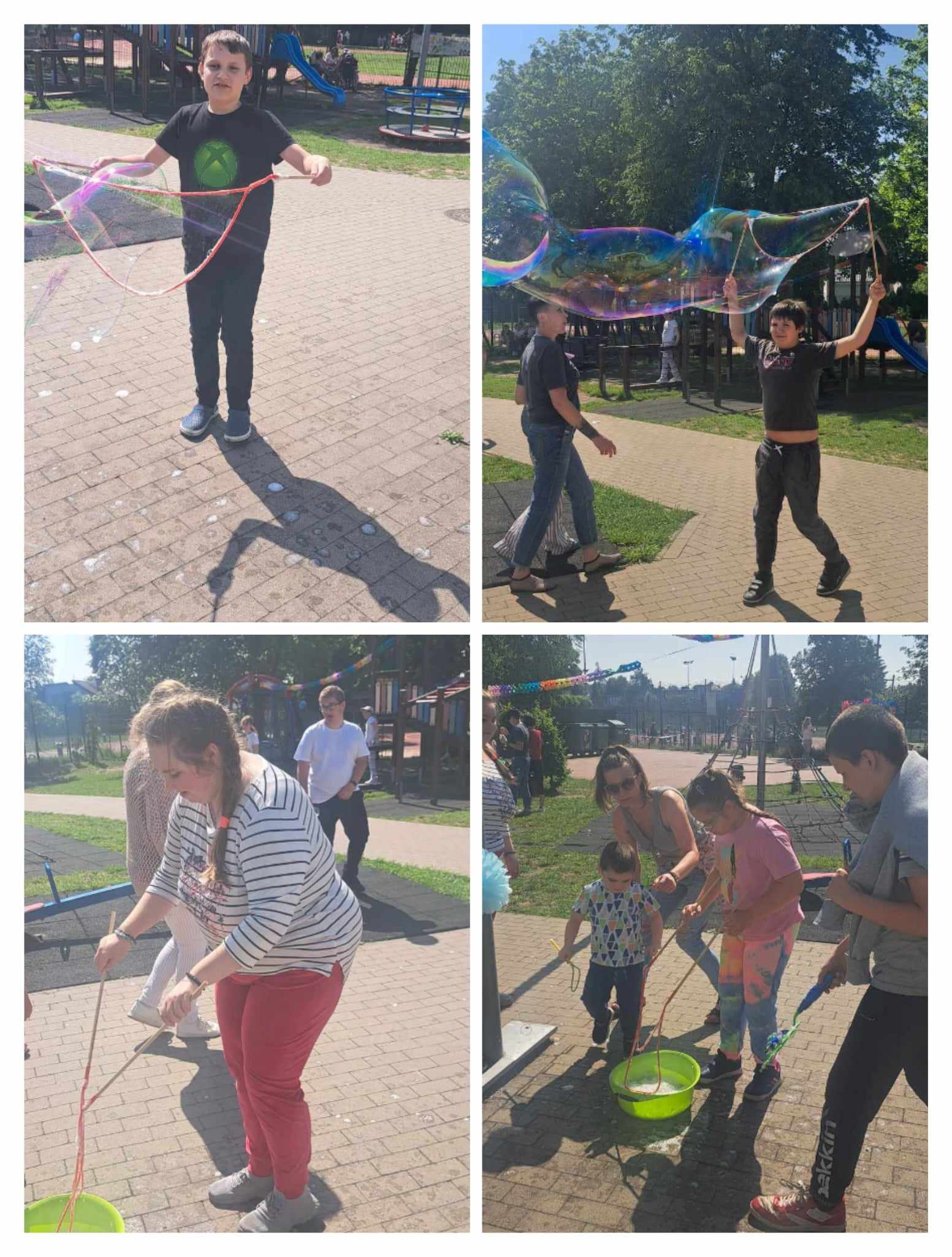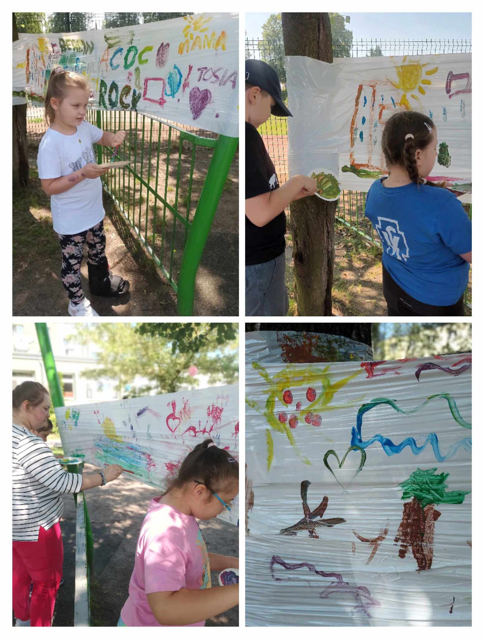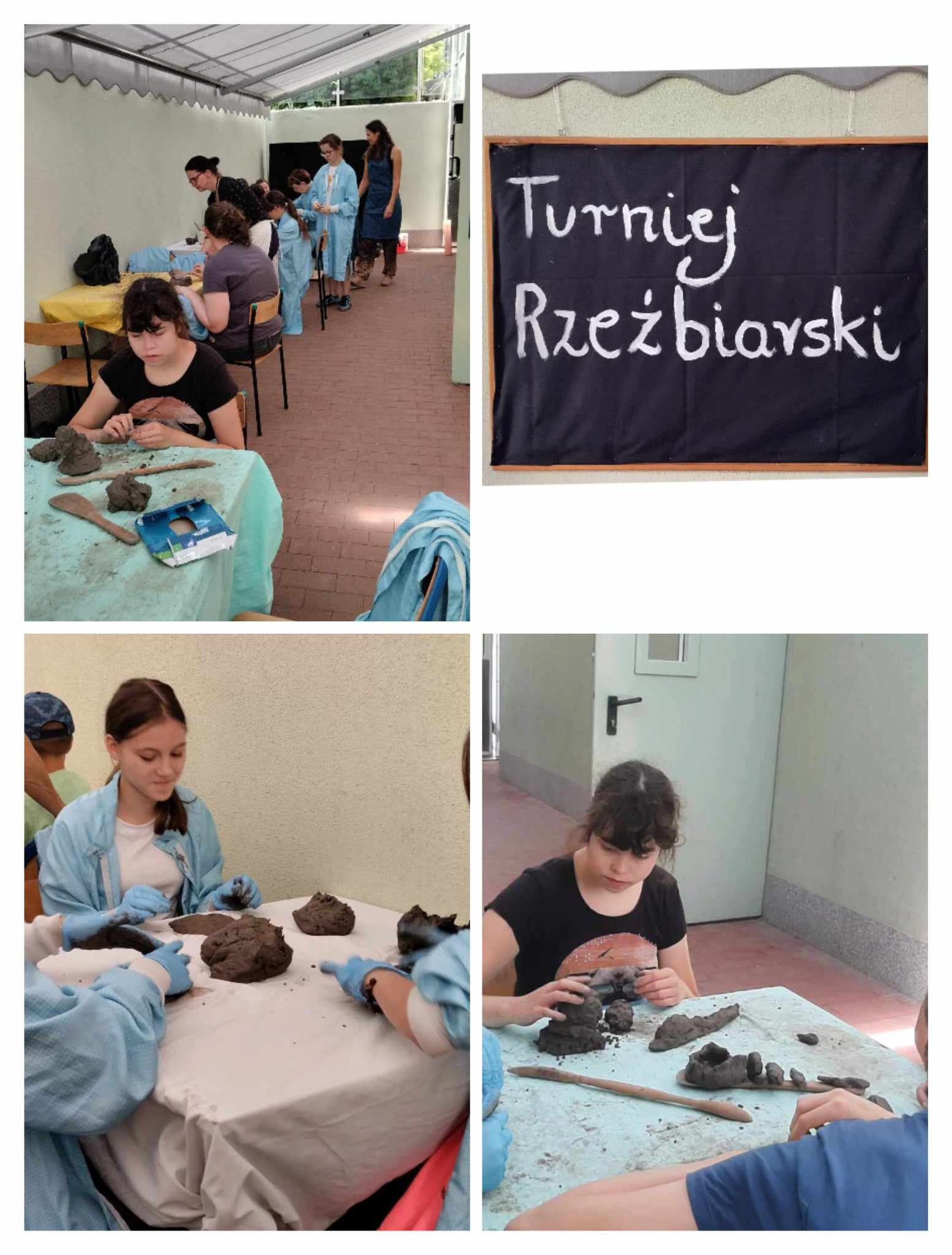 Po części artystycznej na boisku szkolnym odbyły się aktywności sportowe. Uczniowie mieli możliwość wyrażania swojej ekspresji nie tylko uczestnicząc w zabawach muzyczno-ruchowych, ale i plastycznych w klasach i na boisku -malując farbami po folii strechowej. Na boisku znajdowała się ścianka, przy której każdy mógł wykonać sobie zdjęcie. Tego dnia odbył się także Turniej Rzeźbiarki.