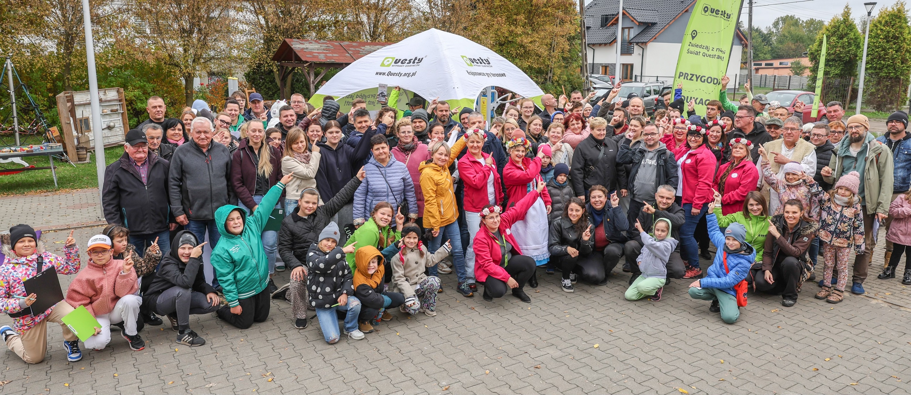 Pierwszym krokiem było rozwiązanie „Questu Spotkania”, okazjonalnego questu edukacyjnego wokół questowego namiotu, co pokazało początkującym, na czym to polega. Następnie uczestnicy ruszyli w trasę, jedni z ulotkami w ręce, inni z aplikacją w telefonie. Czytając wierszowane wskazówki, uczestnicy podążali questem w terenie i poznawali historię naszej wsi. Na końcu drogi na odkrywców czekał niezwykły „skarb”.