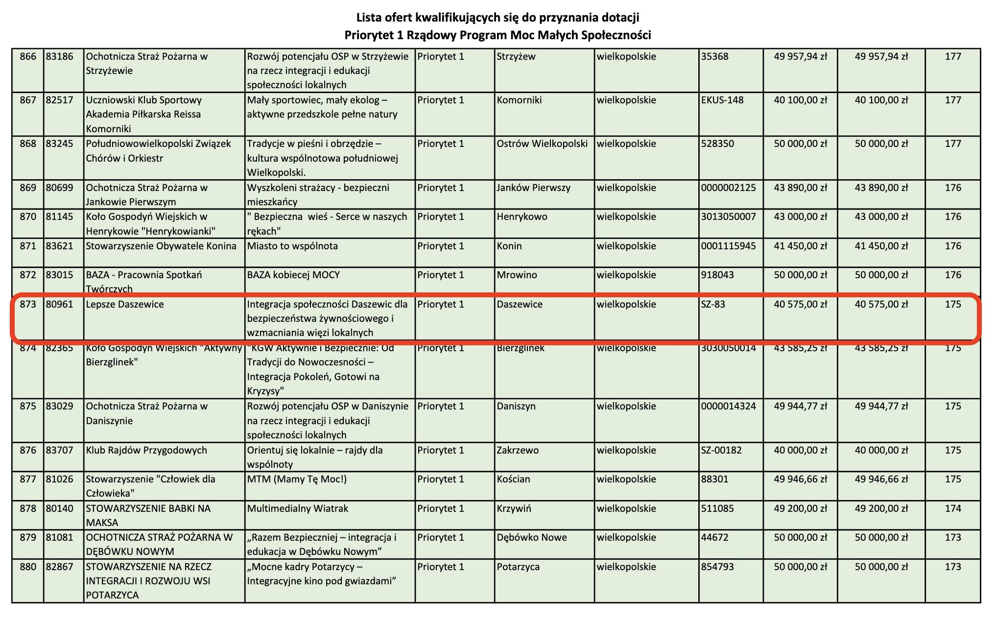 Stowarzyszenie „Lepsze Daszewice” znalazło się w gronie laureatów prestiżowego konkursu realizowanego w ramach Rządowego Programu „Moc Małych Społeczności”, prowadzonego pod hasłem: „Odporne, zintegrowane społeczności lokalne”.