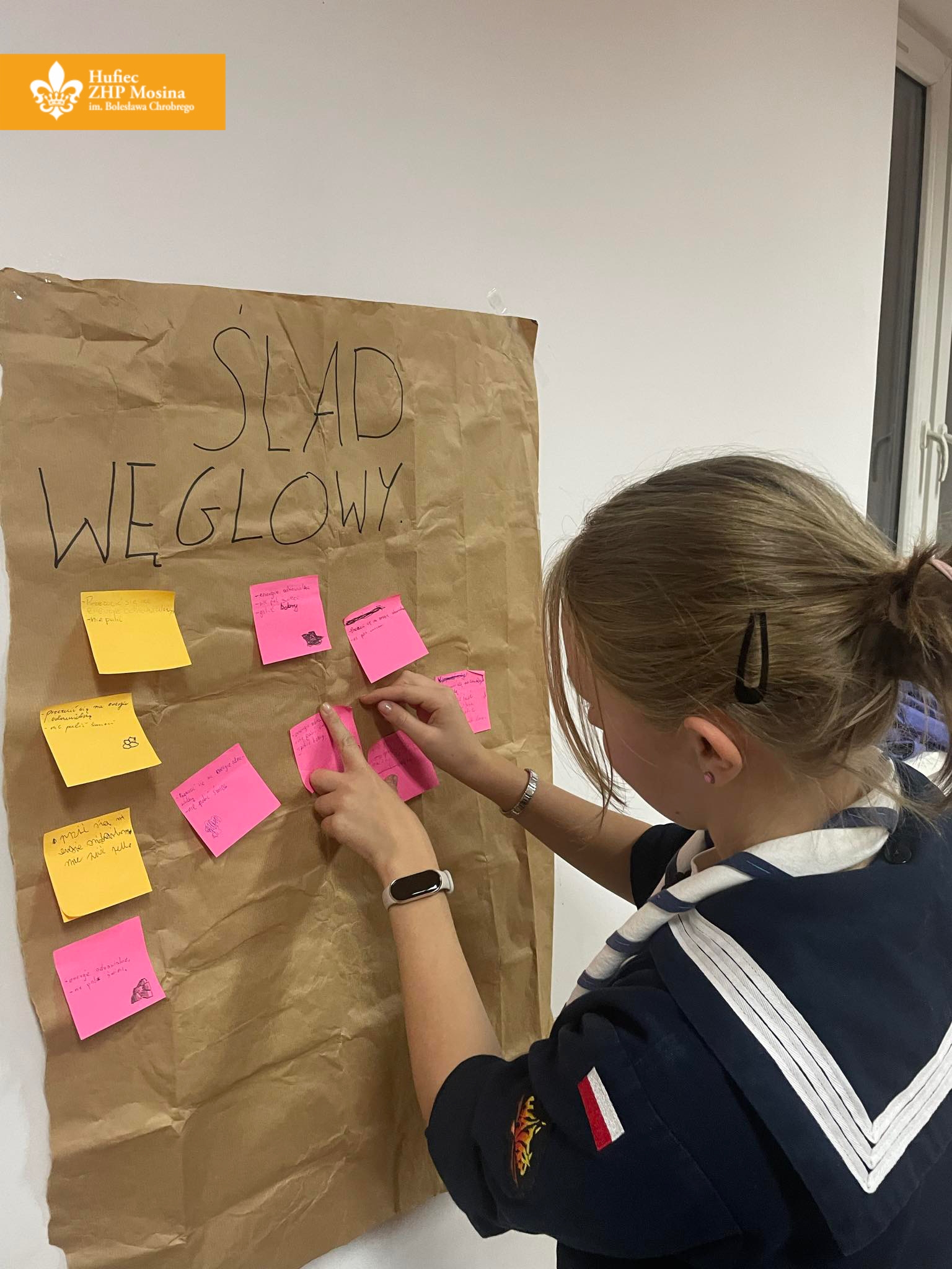 Na ostatniej zbiórce poznawaliśmy zagrożenia związane z globalnym ociepleniem. Robiliśmy mapę myśli dotyczącą tego, jak możemy zmniejszać ślad węglowy i dowiedzieliśmy się, w jaki sposób za pomocą parków i obiektów natury można chronić przyrodę. Na końcu jako podsumowanie informacji nagraliśmy filmiki mające informować innych o globalnym ociepleniu, śladzie węglowym i formach ochrony przyrody. Dodatkowo dwie nasze druhny Weronika oraz Lena otworzyły próby na stopień pionierki!
