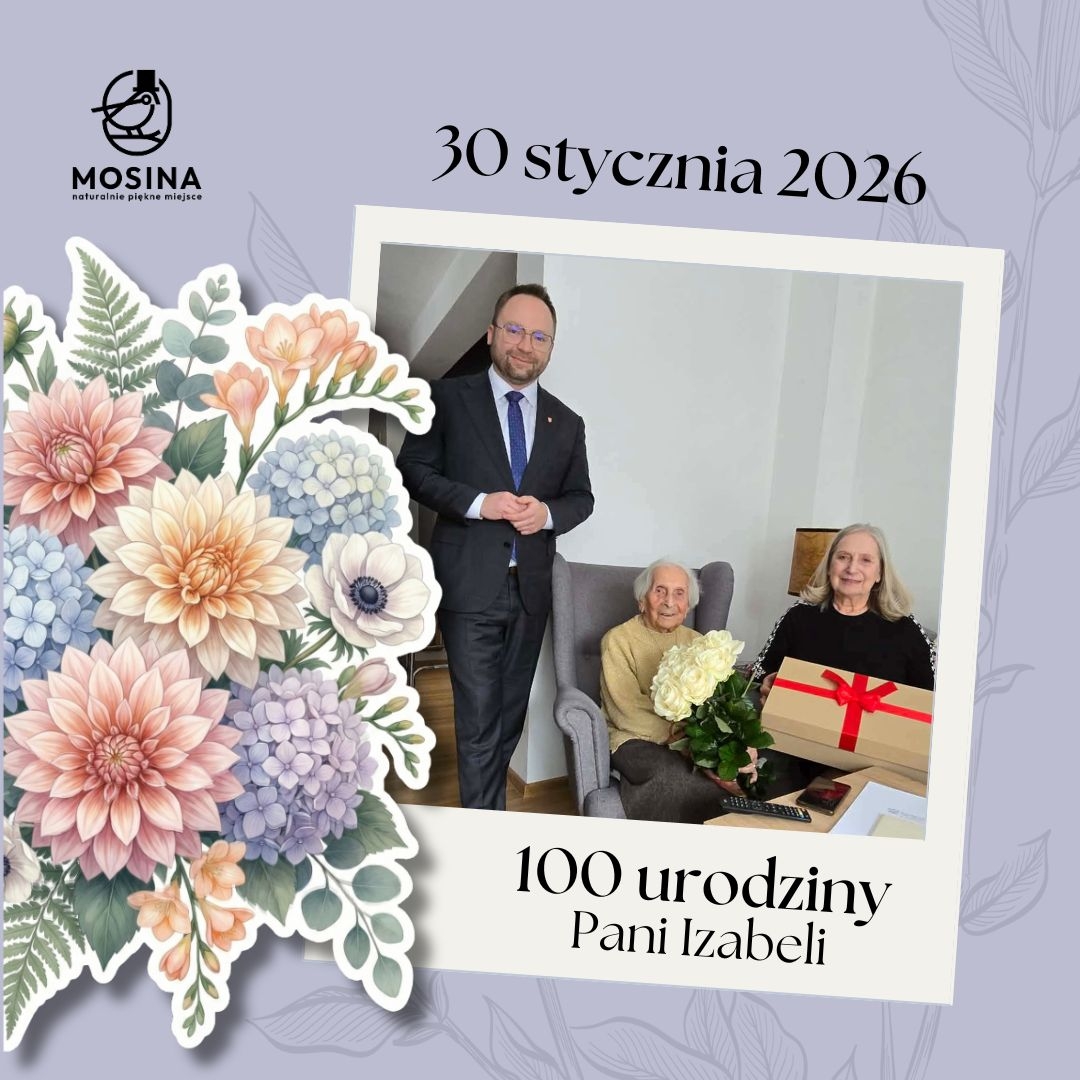 Wyjątkowe, bo 100. urodziny mieszkanki Czapur. Z tej okazji panią Izabelę Teresińską z Czapur odwiedził Dominik Michalak - Burmistrz Gminy Mosina. Nie zabrakło serdecznych życzeń, listu gratulacyjnego, a także bukietu białych róż i kosza pełnego słodkości. Był też czas na pełne wspomnień rozmowy. Atmosfera spotkania była ciepła i bardzo wzruszająca.