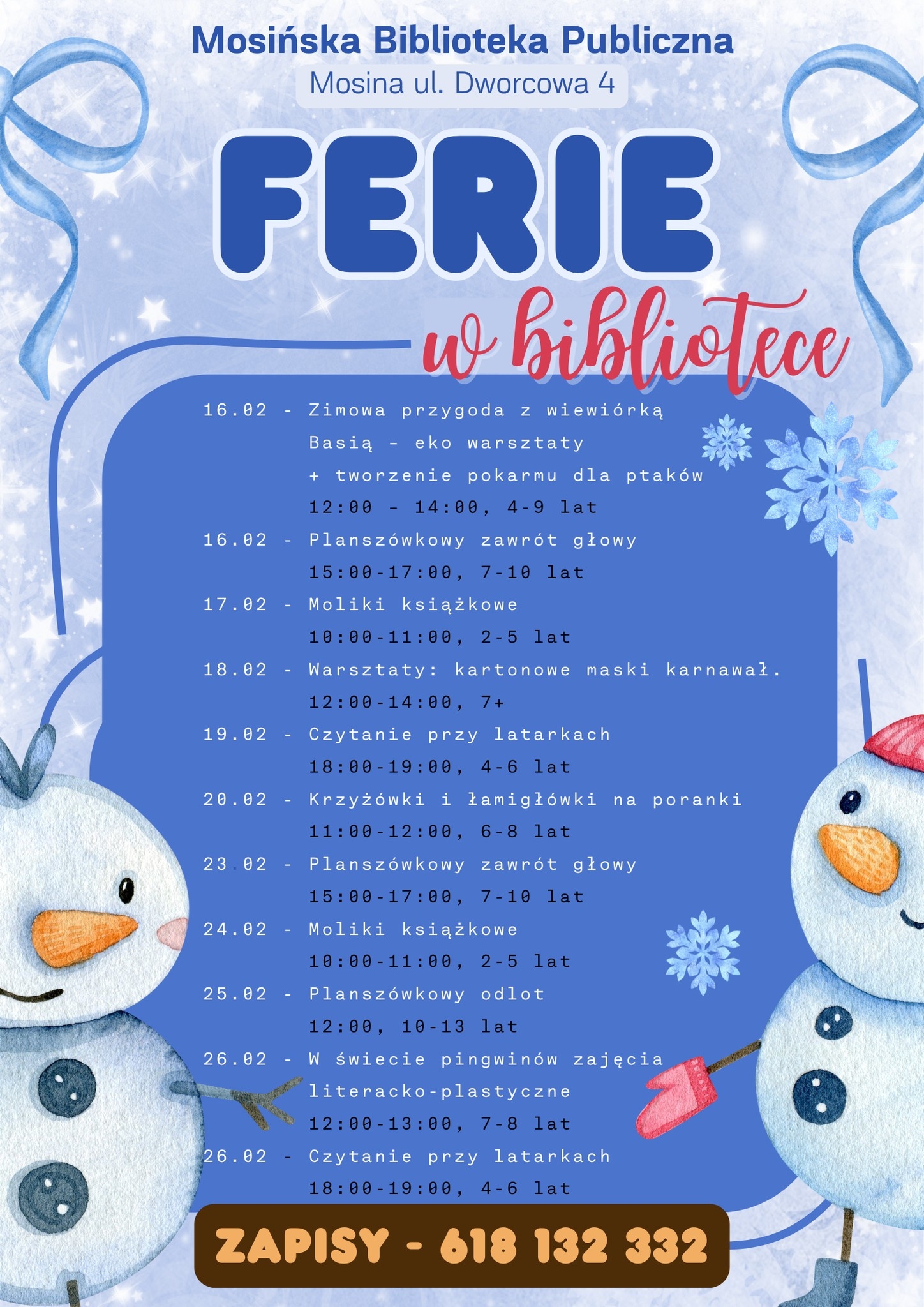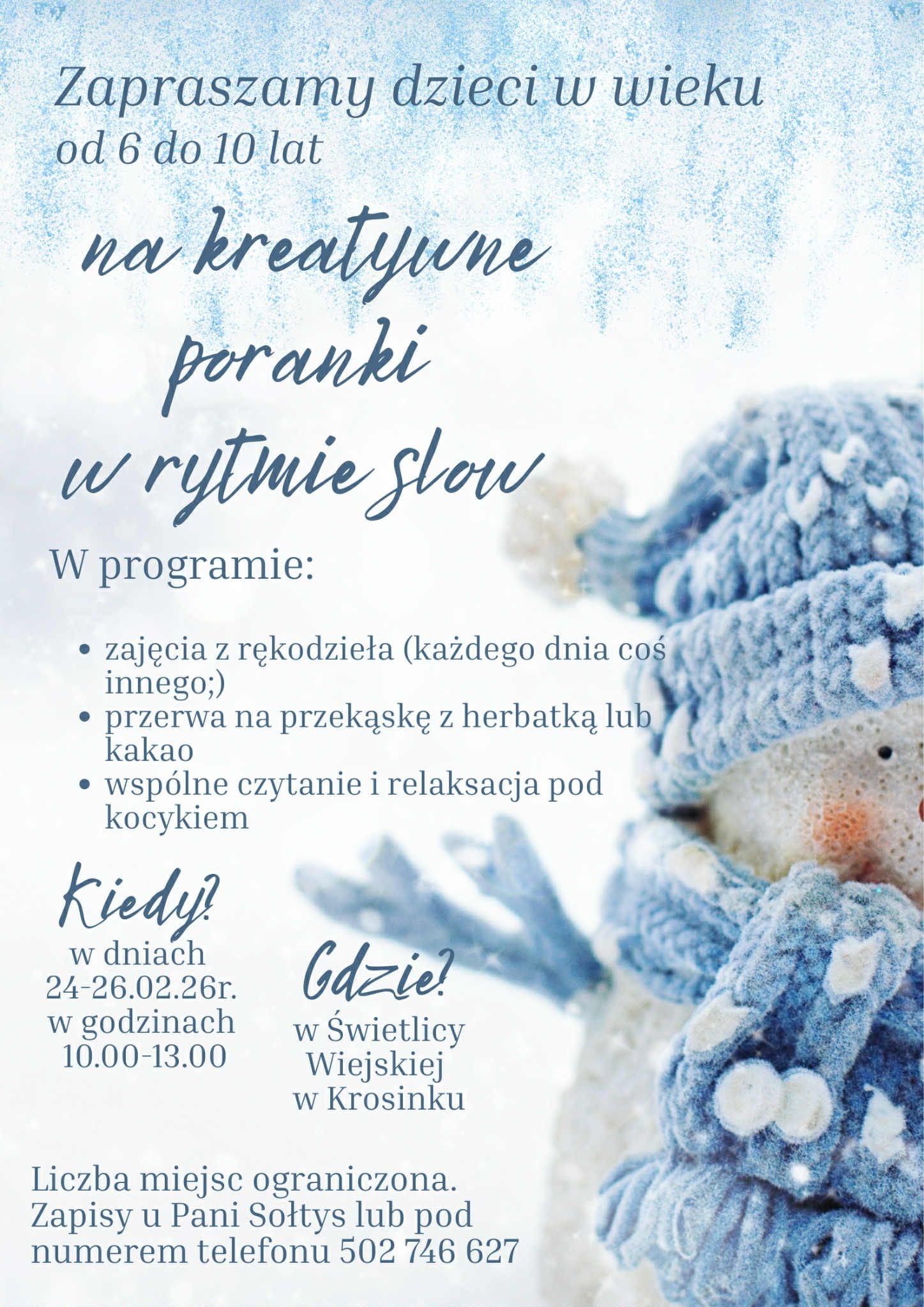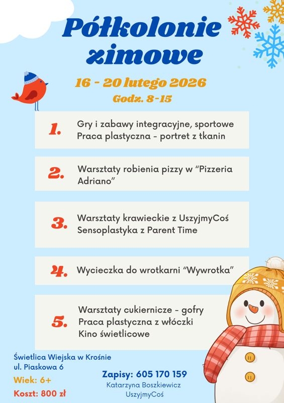 Zajrzyjcie do harmonogramu - zaplanowaliśmy dla Was mnóstwo różnorodnych zajęć od 16 do 27 lutego. Każdy znajdzie coś dla siebie.