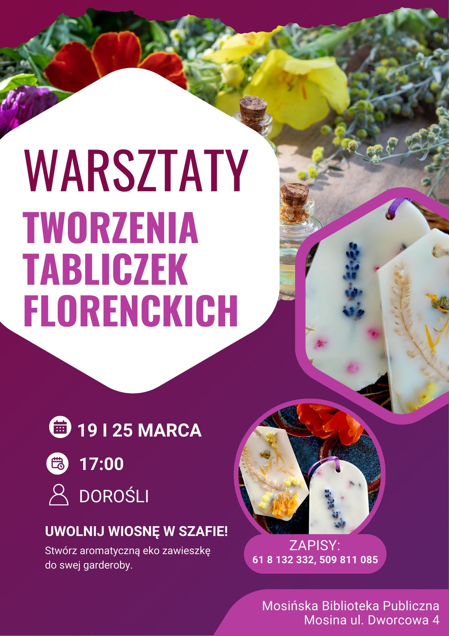 Już w czwartek 19 lub w środę 25 marca macie szansę wziąć udział w warsztatach twórczych - zapachowe tabliczki florenckie, które odświeżą nasze garderoby.