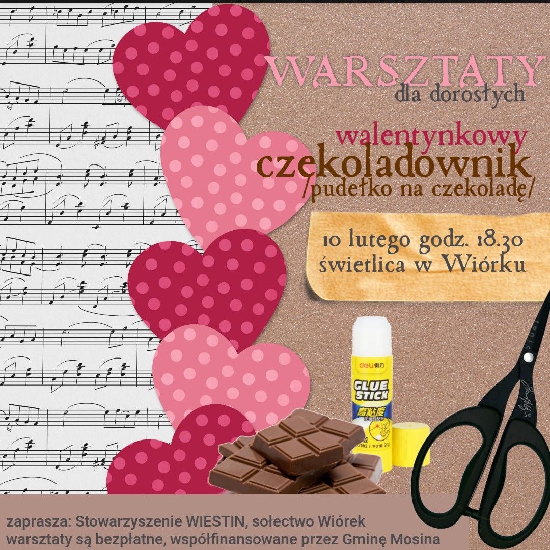 Sołectwo Wiórek zaprasza dorosłych na walentynkowe warsztaty kreatywne.