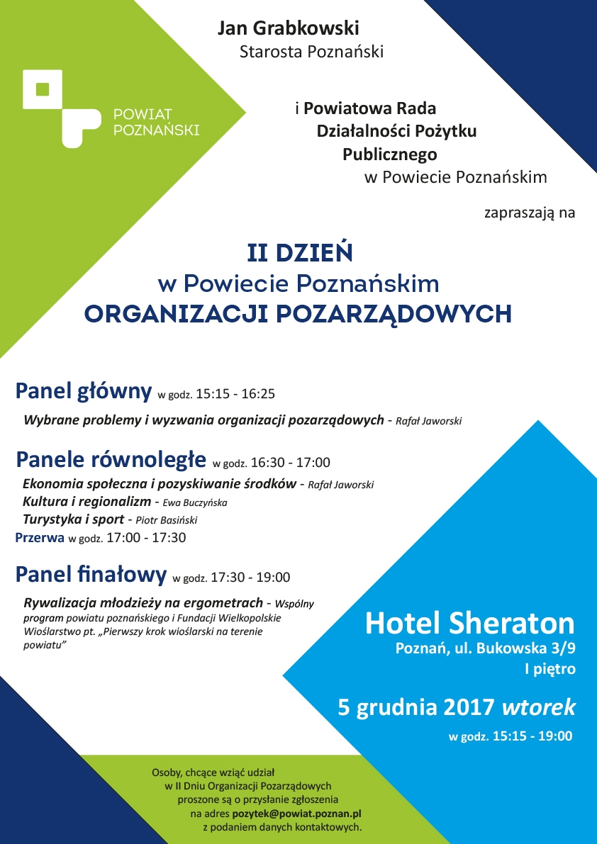 Osoby chcące wziąć udział w wydarzeniu proszone są z przyczyn organizacyjnych o zgłaszanie swojej obecności na adres pozytek@powiat.poznan.pl.