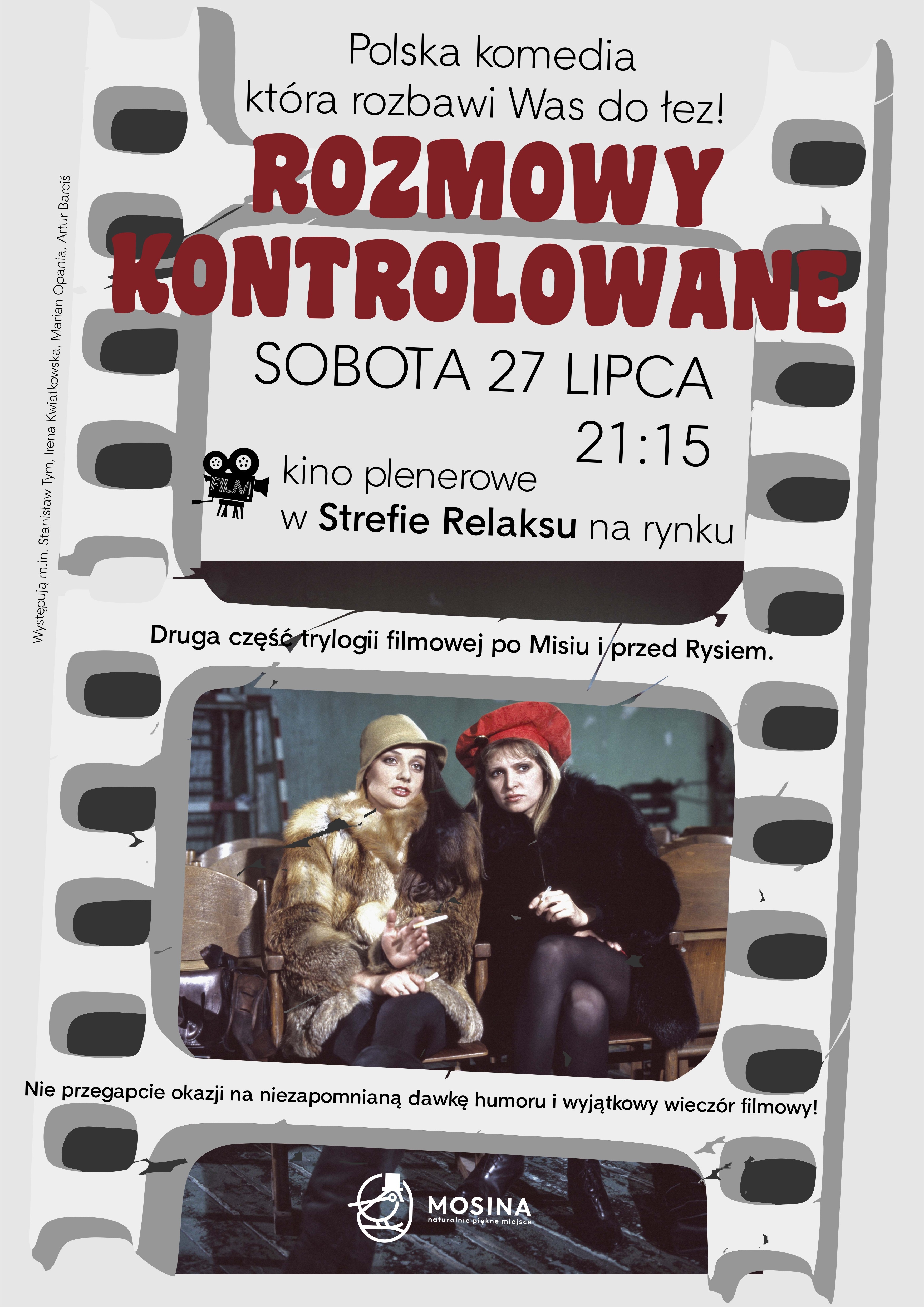 Ze względu na prognozowane opady deszczu PRZEKŁADAMY kino plenerowe z filmem "Rozmowy kontrolowane" na 31 sierpnia.