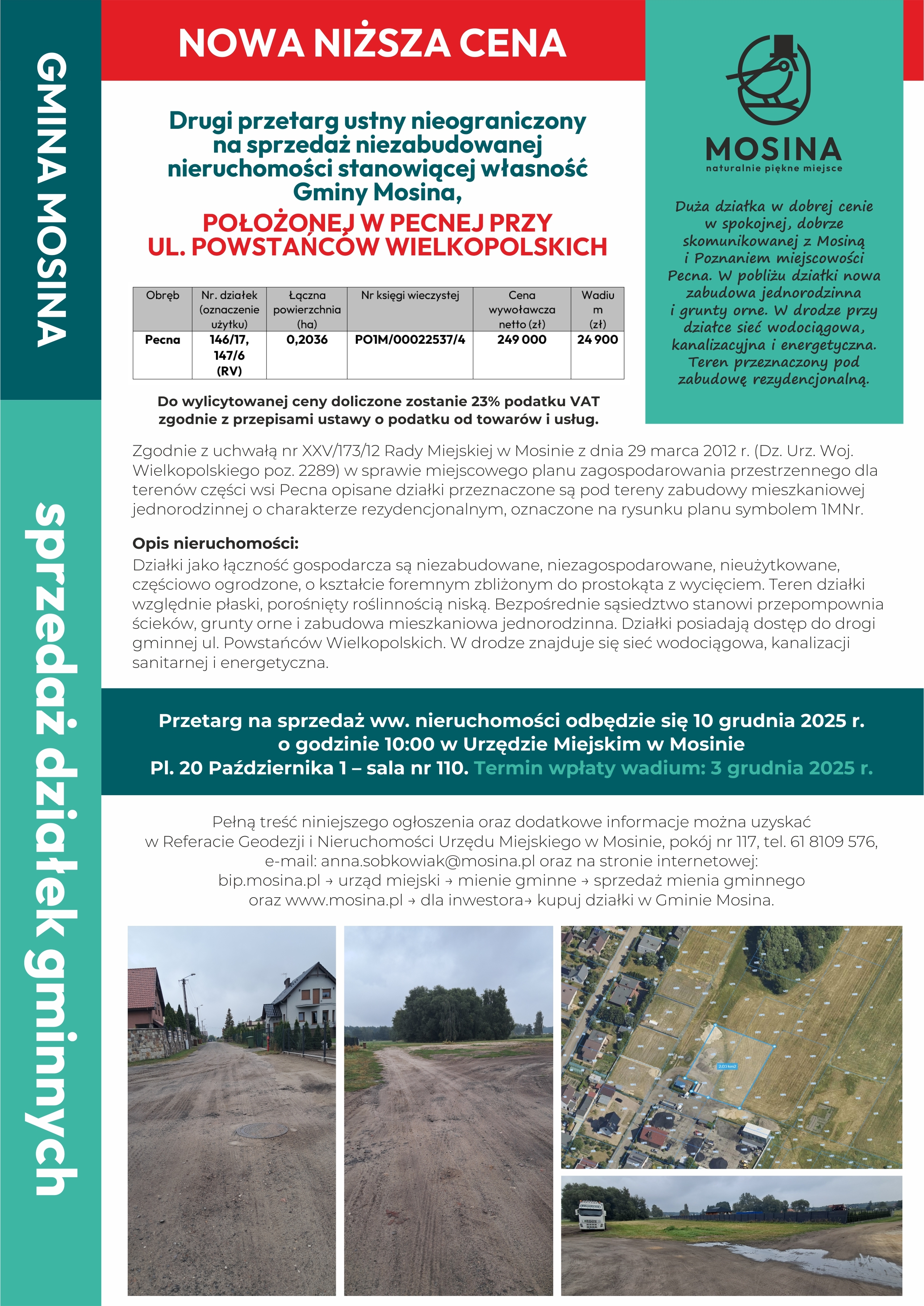 Przetarg: 10 grudnia 2025 r., godz. 10:00, Urząd Miejski w Mosinie