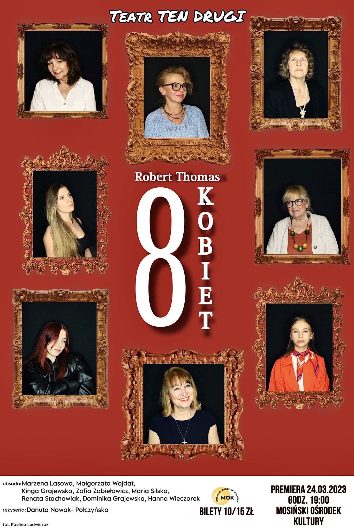 Mosiński Ośrodek Kultury zaprasza na „8 kobiet” - premierę sztuki Roberta Thomasa w adaptacji Kingi Hofman, Danuty Nowak - Połczyńskiej i Małgorzaty Wojdat, w wykonaniu Teatru Ten Drugi.