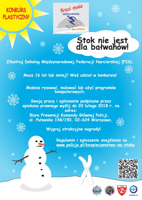 Elementem akcji jest konkurs plastyczny dla dzieci i młodzieży na zilustrowanie Dekalogu FIS pn. „Stok nie jest dla bałwanów”, materiał na stronie internetowej: www.policja.pl/bezpieczenstwo-na-stoku organizowany przez Biuro Prewencji Komendy Głównej Policji, Polski Związek Narciarski, Stowarzyszenie Instruktorów i Trenerów Narciarstwa PZN oraz Fundację PZU. W konkursie mogą wziąć udział osoby urodzone