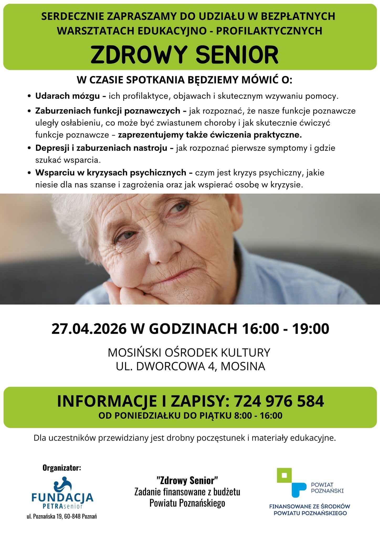 Informacje i zapisy: 724 976 584 (poniedziałek–piątek, godz. 8:00–16:00)