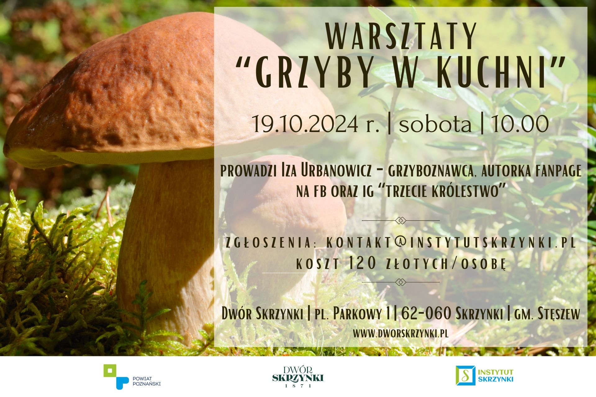 Zapraszamy na cykl Warsztatów Grzyboznawczych, które w Dworze Skrzynki (pl. Parkowy 1, Skrzynki, gm. Stęszew, powiat poznański) poprowadzi Iza Urbanowicz – grzyboznawca, niestrudzona edukatorka wiedzy mykologicznej i autorka wielu publikacji popularyzujących grzyby. Od lat pisze o grzybach, tworzy ich profile w mediach społecznościowych, tropi i fotografuje. Po prostu dokumentuje życie Fungi, czyli grzybów – trzeciego po Faunie i Florze królestwa. Udowadnia przede wszystkim, że grzyby jadalne to nie tylko borowik szlachetny i koźlarz babka. Więcej informacji na profilu: https://www.facebook.com/TrzecieKrolestwo